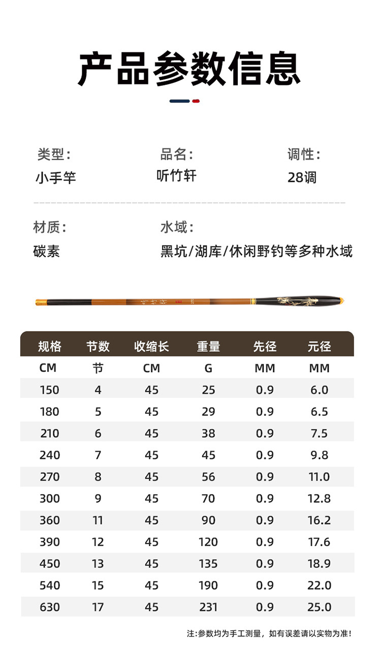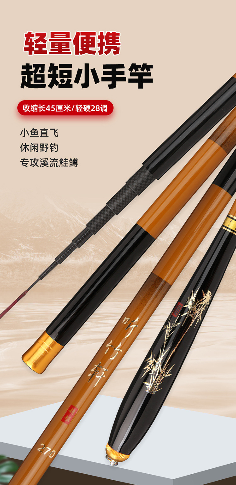 Zhenyi varilla de corriente de carbono ultra-corto mano varilla retráctil 43cm Mesa caña de pescar 2,7-3,6 m caña de pescar luz y duro
