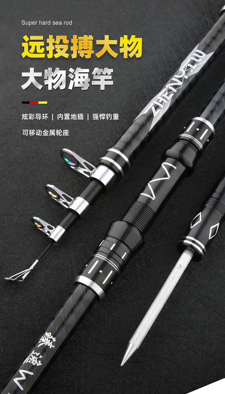 Caña de mar de objetos grandes, caña de pescar, caña de lanzar de largo alcance, caña de pescar, con inserción en el suelo, caña de mar de tela de 6 capas, aparejos de pesca transfronterizos de 4,5 metros, caña de pescar