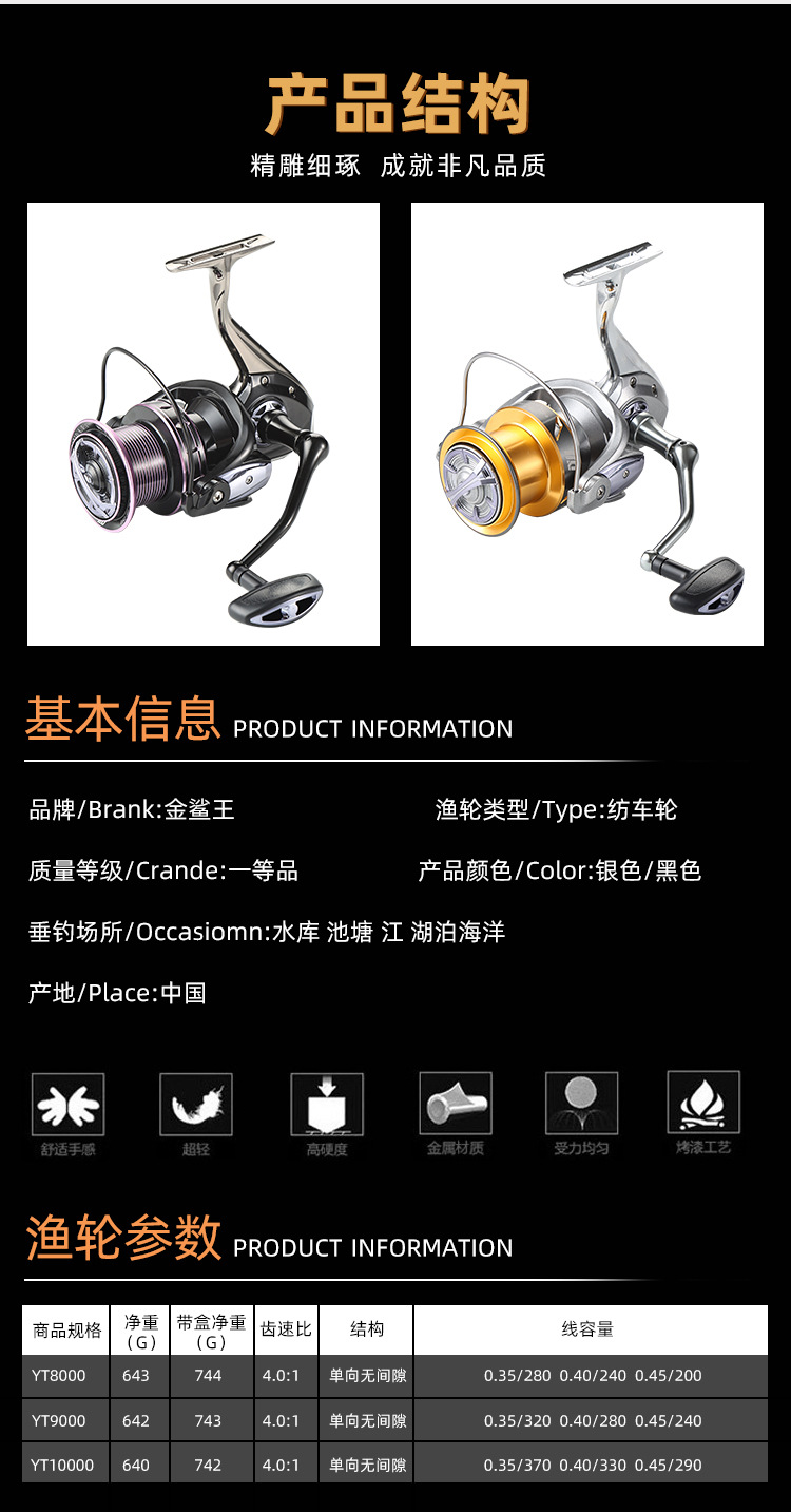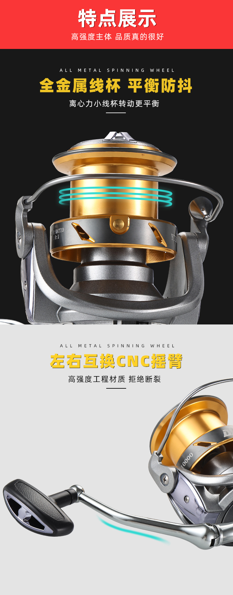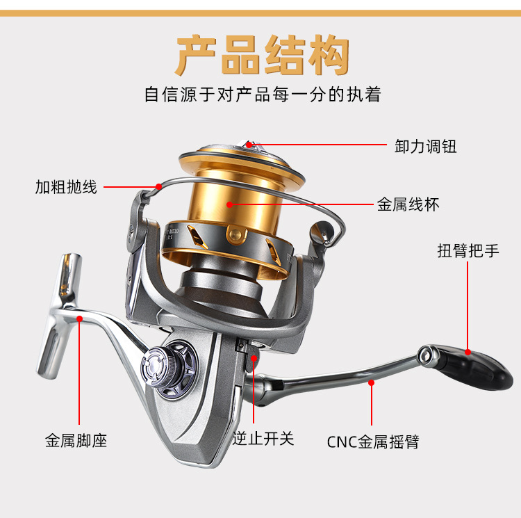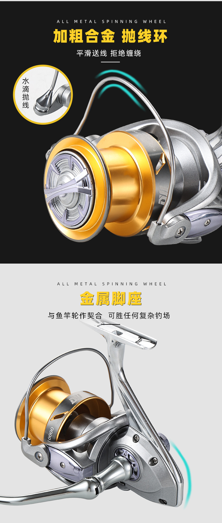 Golden Shark King rueda giratoria 8000-10000 Tipo de alambre de metal Copa asiento de pie de metal gran rueda de lanzamiento de larga distancia rueda de pesca ancla rueda de pesca