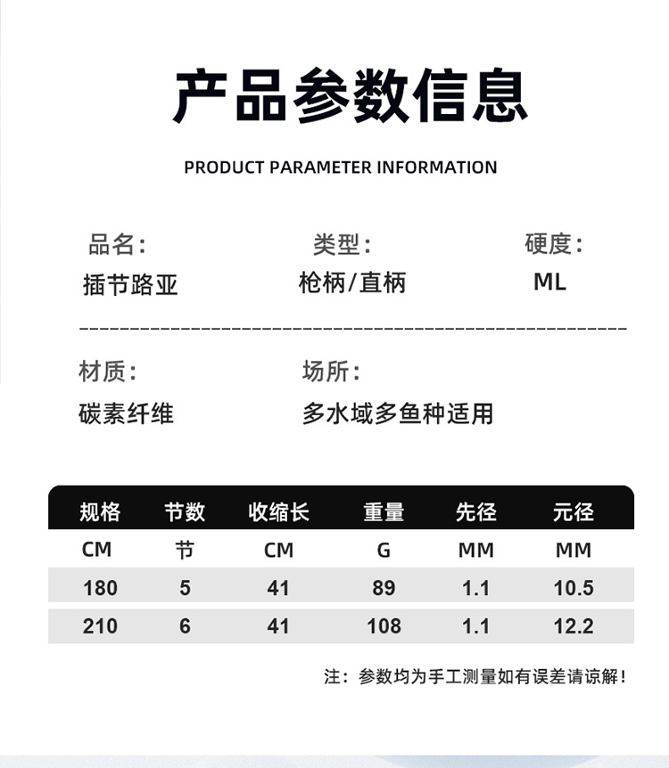 Zhenyi Baja de carbono multi-nodo Luo Ya rod 1.8 2.1 m boca levantada golpear negro ML ajuste contracción de la boca 41 cm