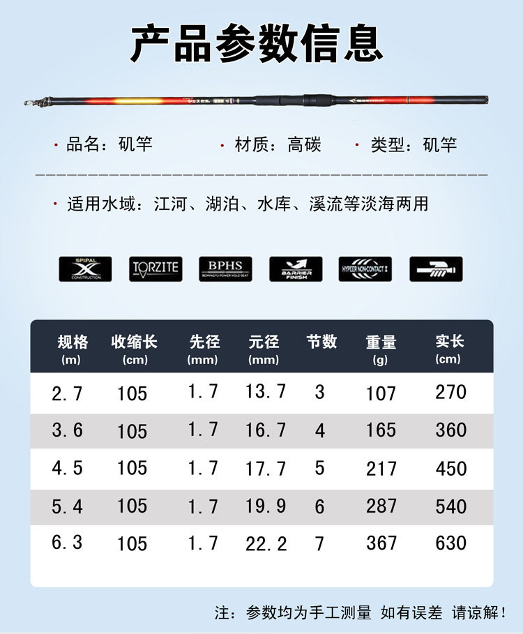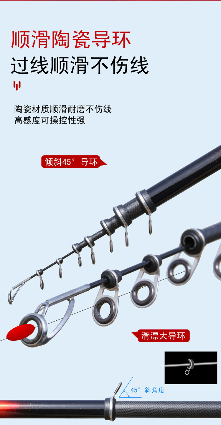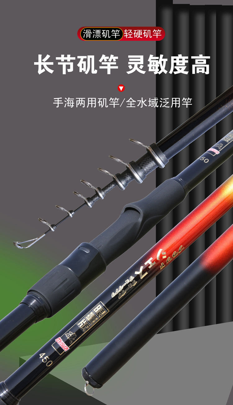 Zhenyi carbono roca caña de pescar sección larga roca caña de pescar 2,7 + 6,3 M N ° 3 varilla mano mar de doble uso de tiro largo barra de deslizamiento flotador