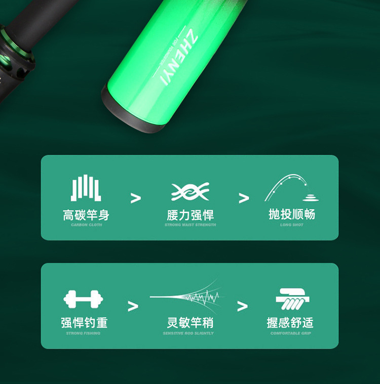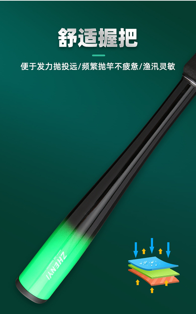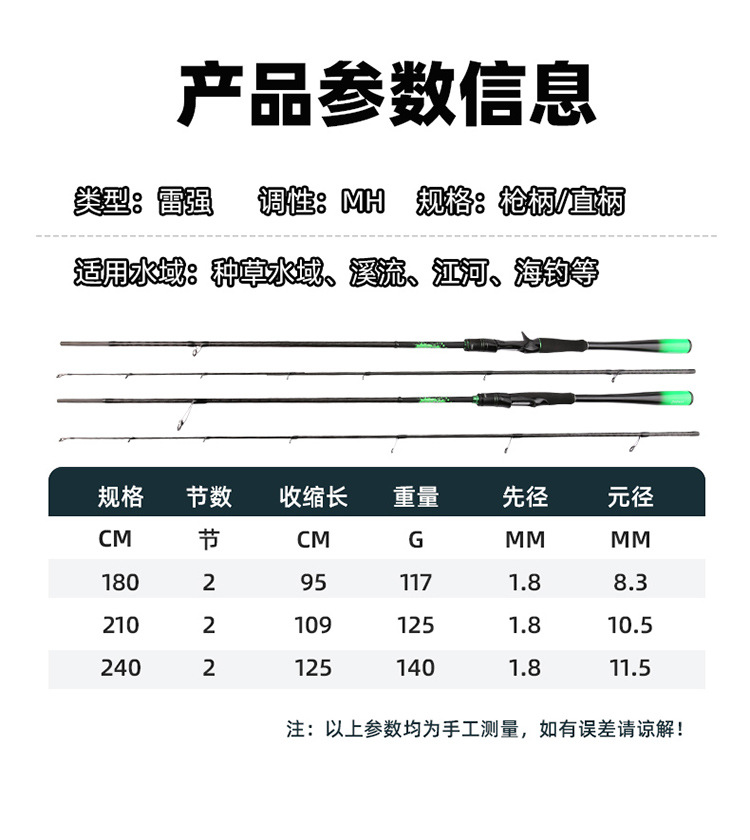 MH nueva varilla mango 1,8 metros 2,1 metros 2,4 metros 2,7 metros ultra-ligero duro alto carbono negro