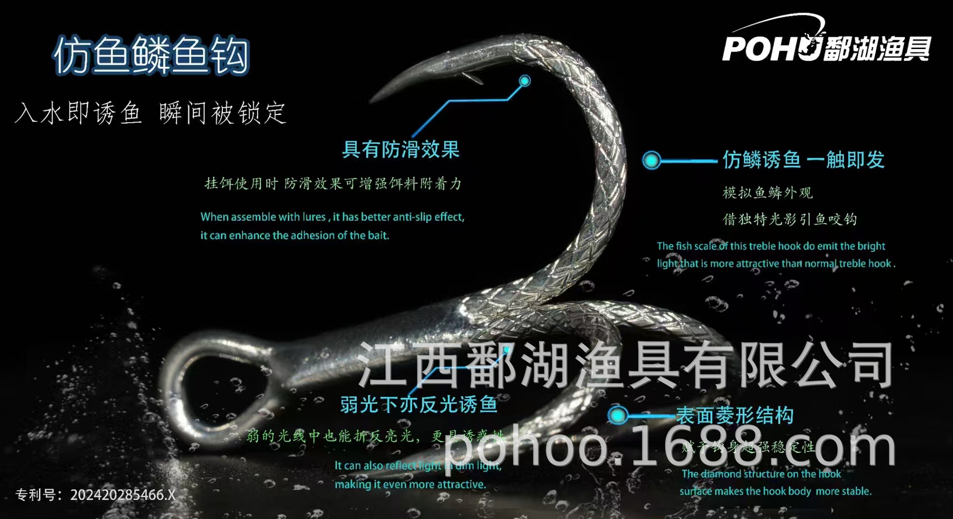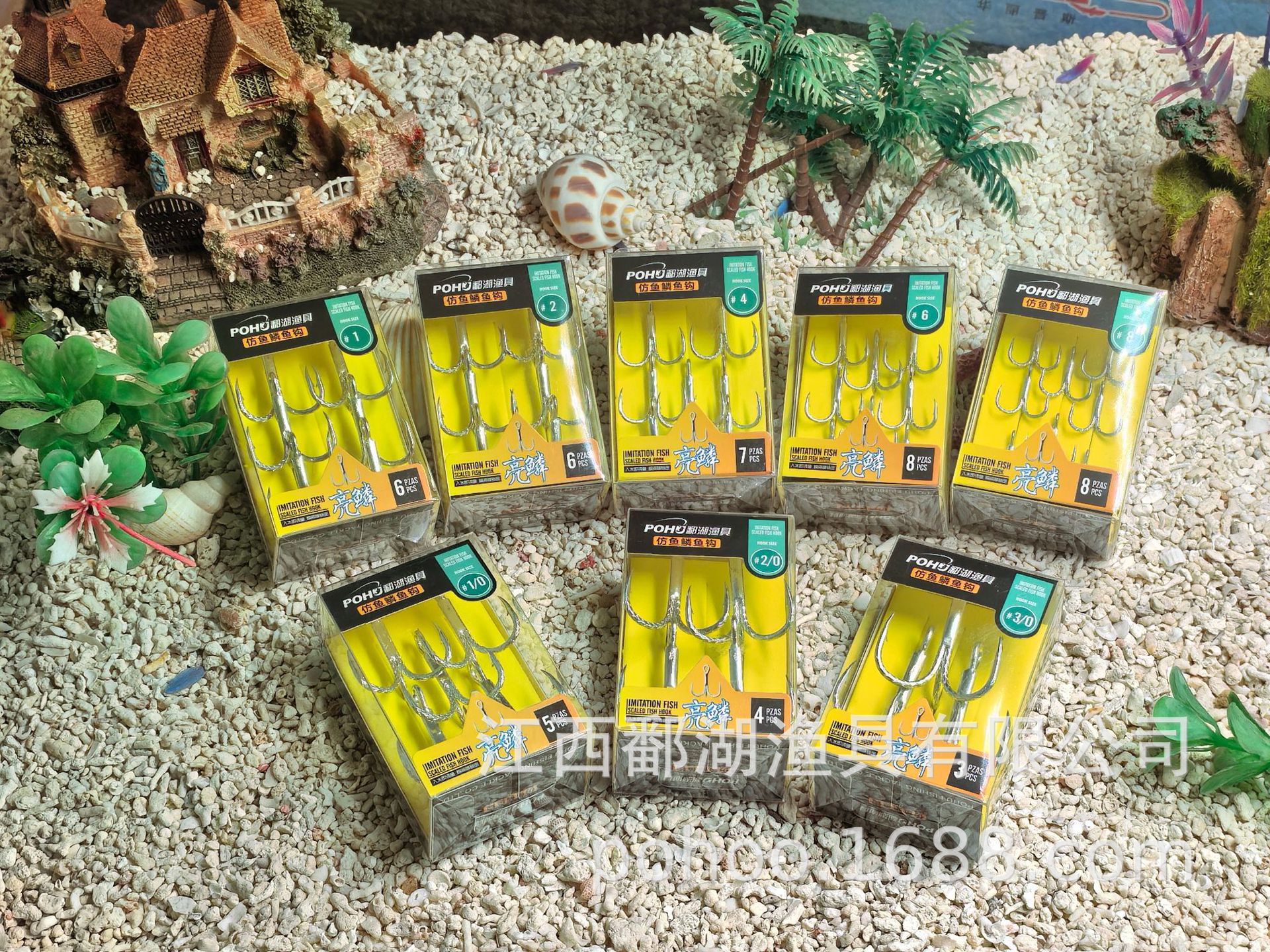 Pohu POHU escamas brillantes imitación de escamas de pez tres capas atraer peces diamante afilado fortalecer antideslizante tres ganchos de pesca caja de púas