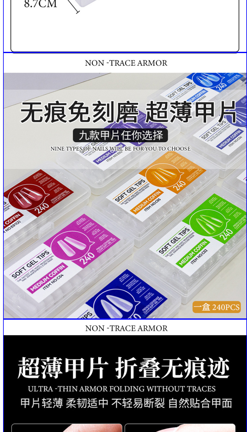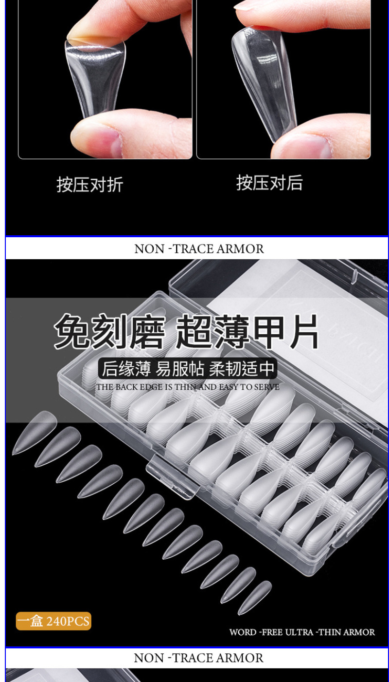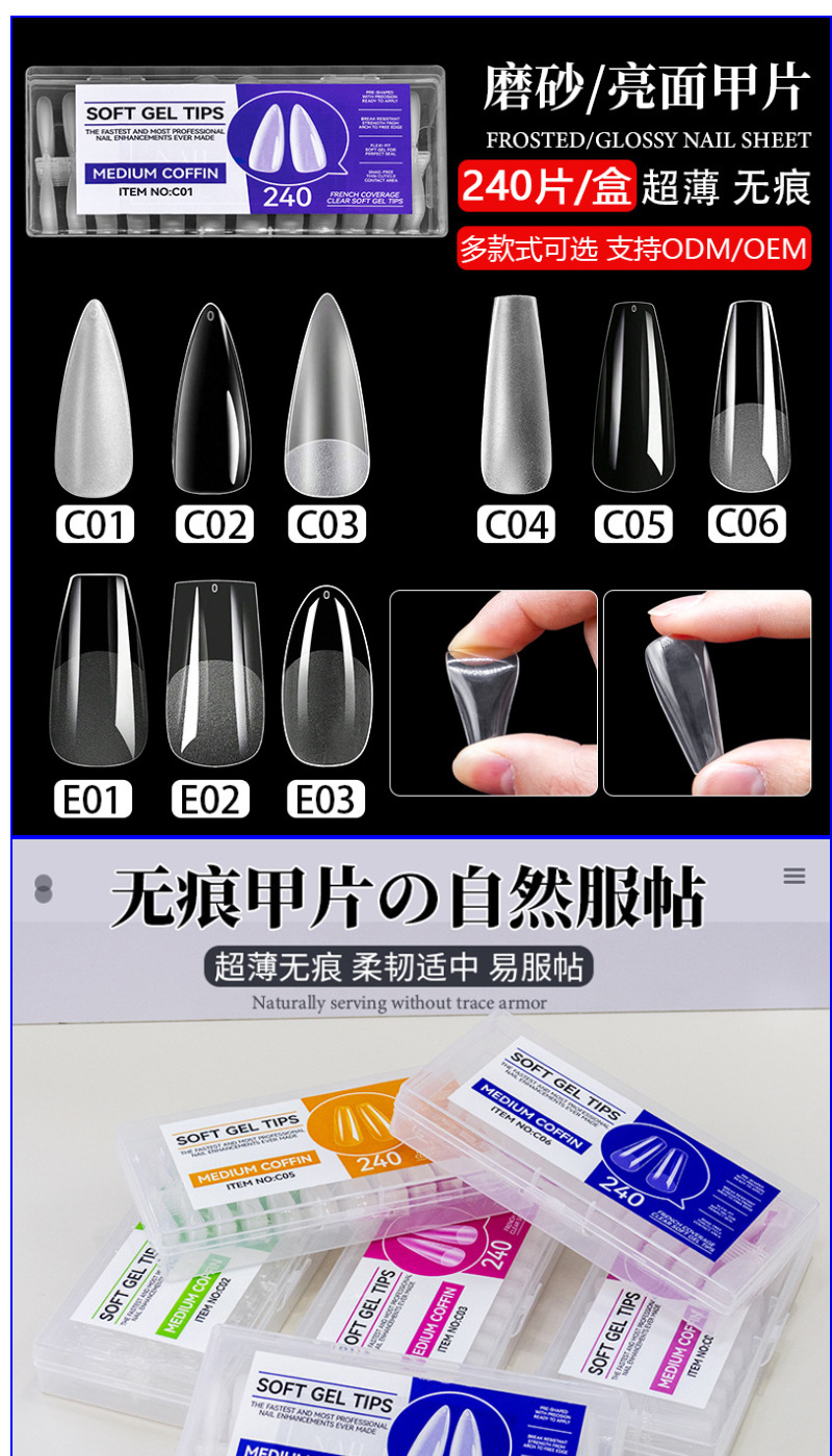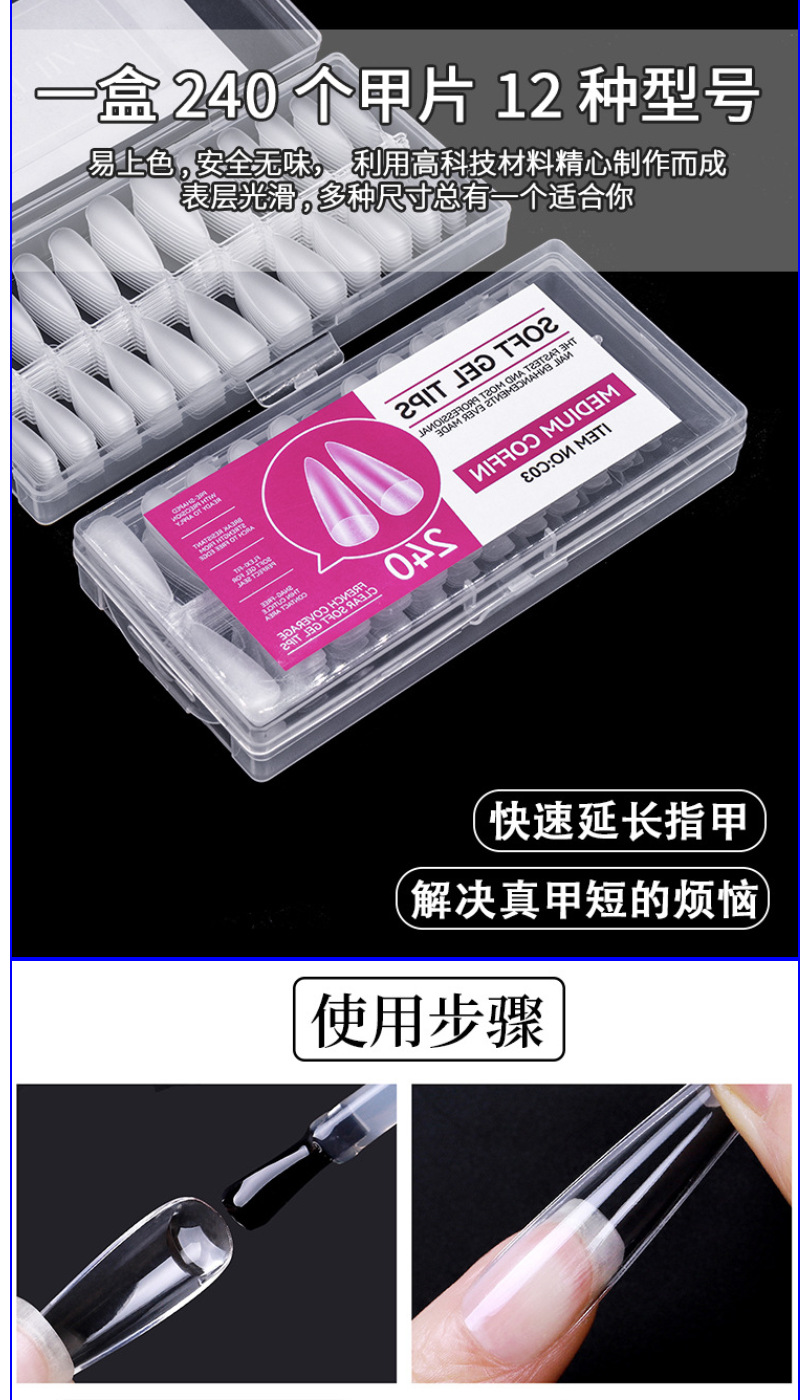 Explosiones transfronterizas de manicuras de manicuras ultrafinas sin marcas de ballet de gotas de agua de manicuras de manicuras de película libre de grabado de manicuras de manicuras 240 piezas