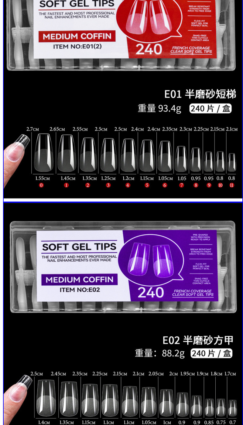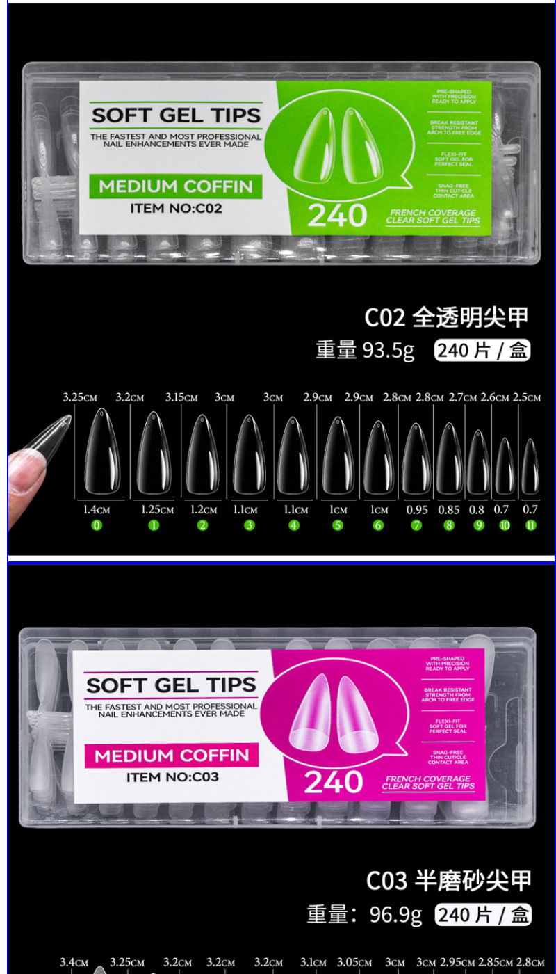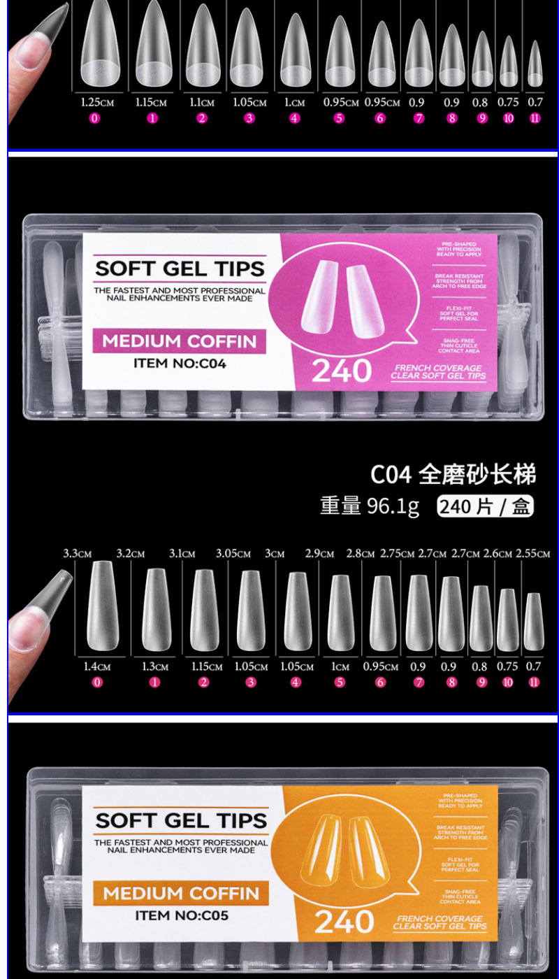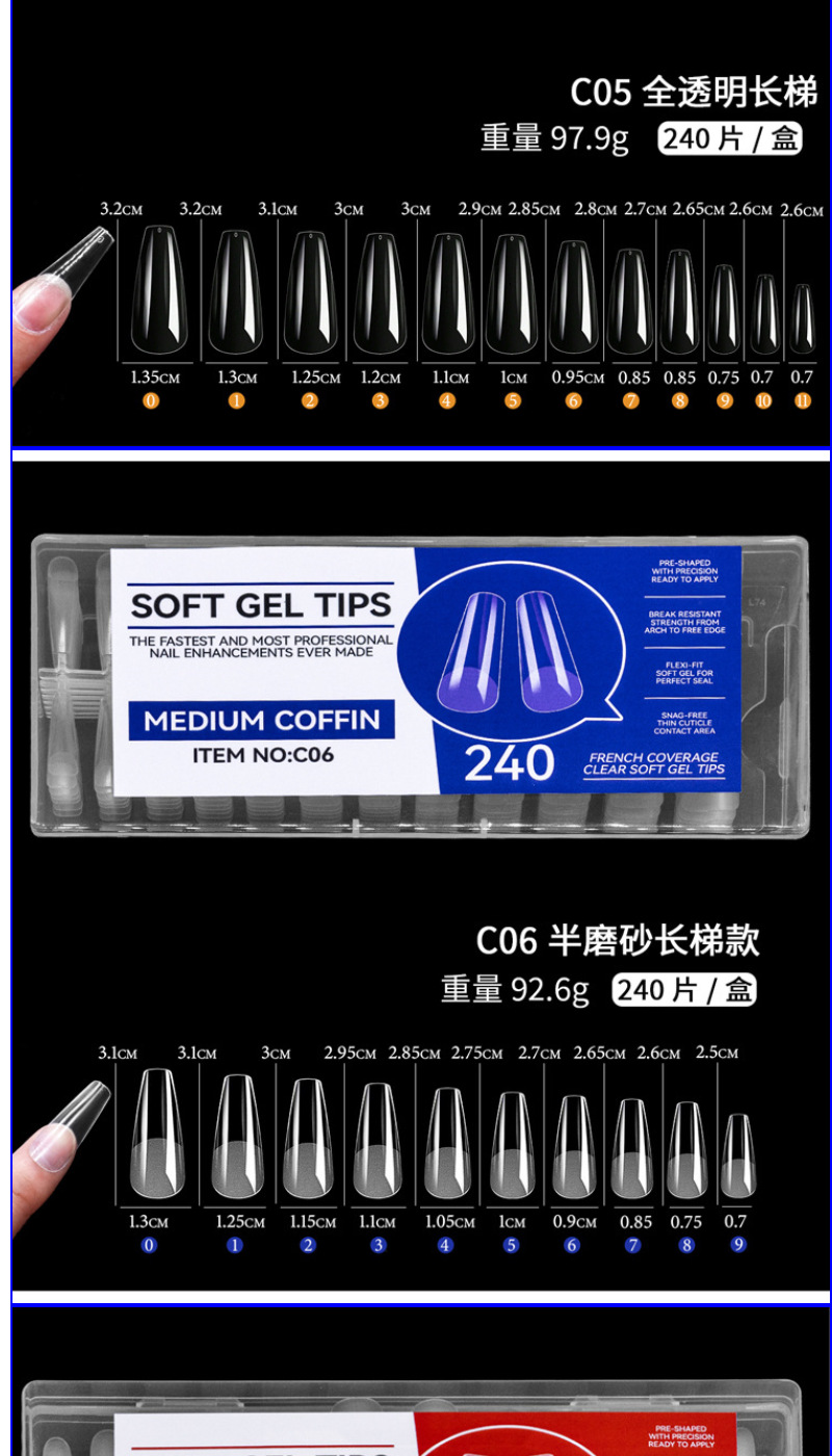 Explosiones transfronterizas de manicuras de manicuras ultrafinas sin marcas de ballet de gotas de agua de manicuras de manicuras de película libre de grabado de manicuras de manicuras 240 piezas
