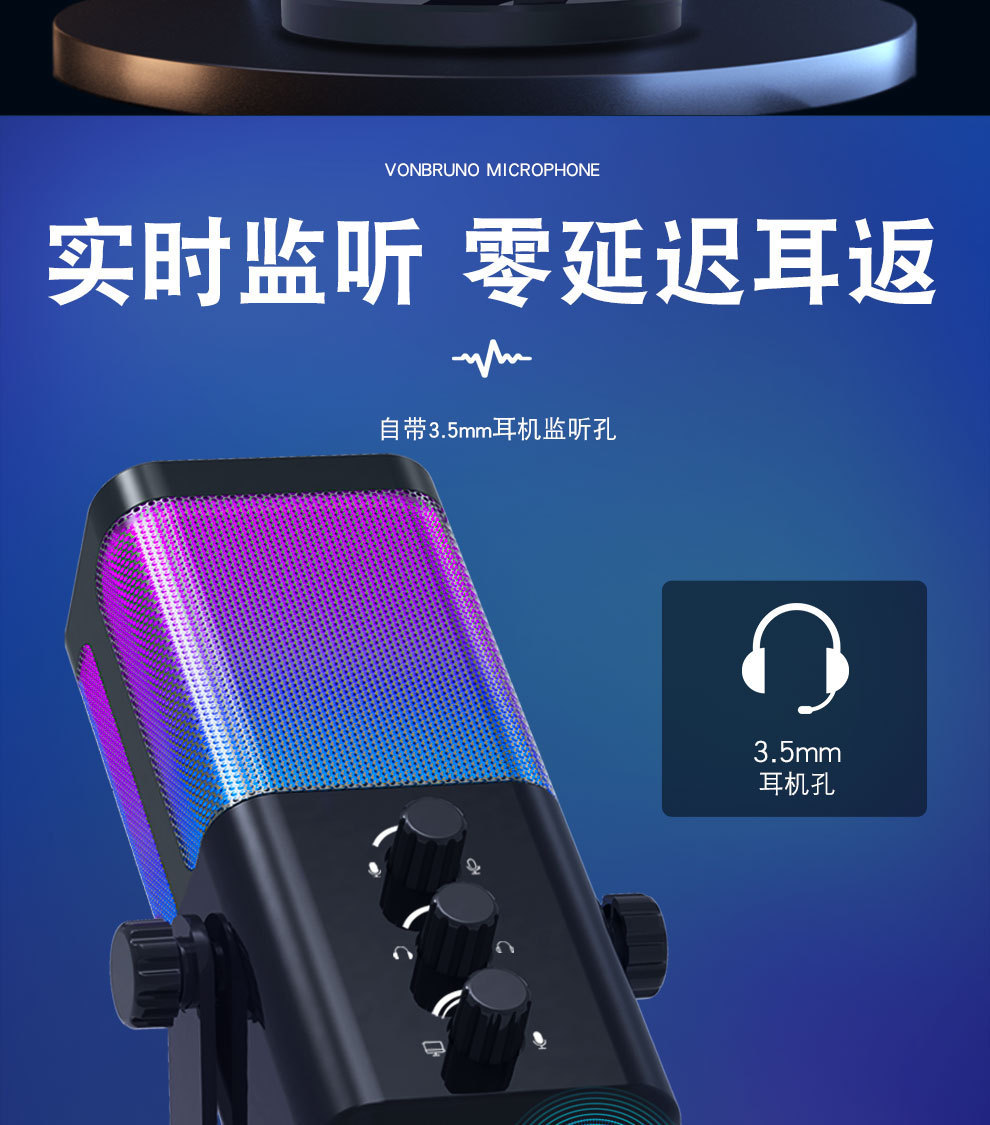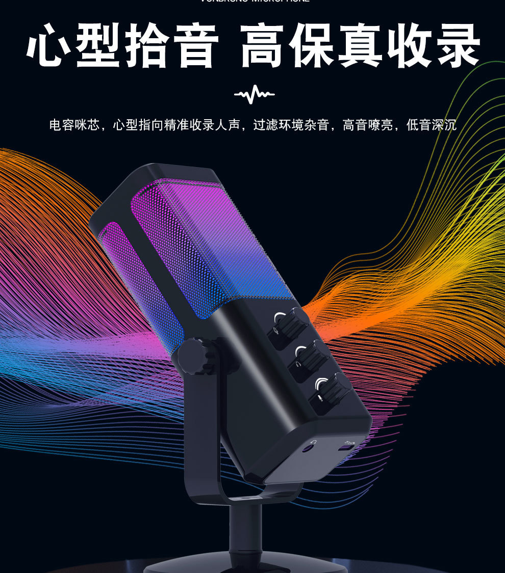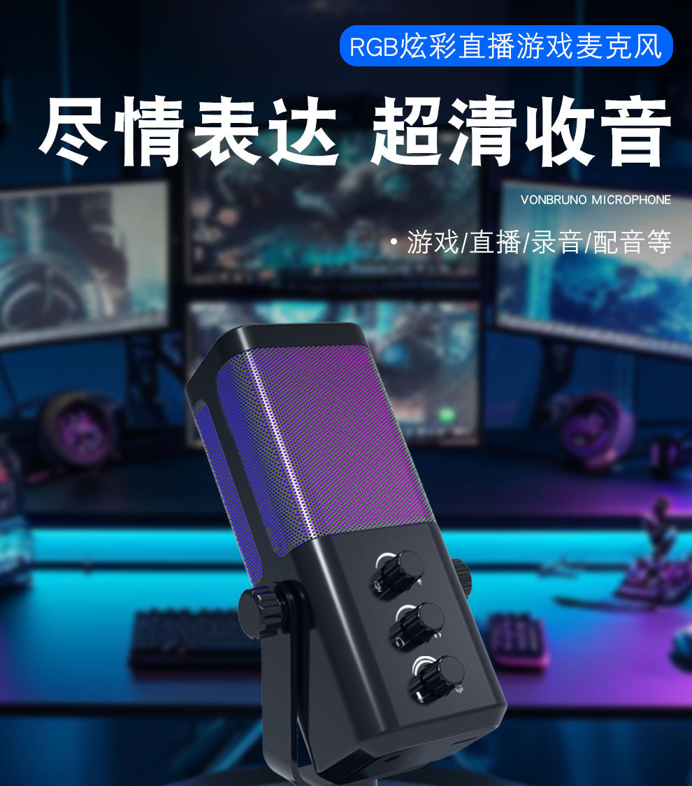 Investigación y desarrollo de fábrica M7 micrófono para juegos computadora USB de escritorio teléfono móvil grabación en vivo micrófono de juego RGB fuente de micrófono