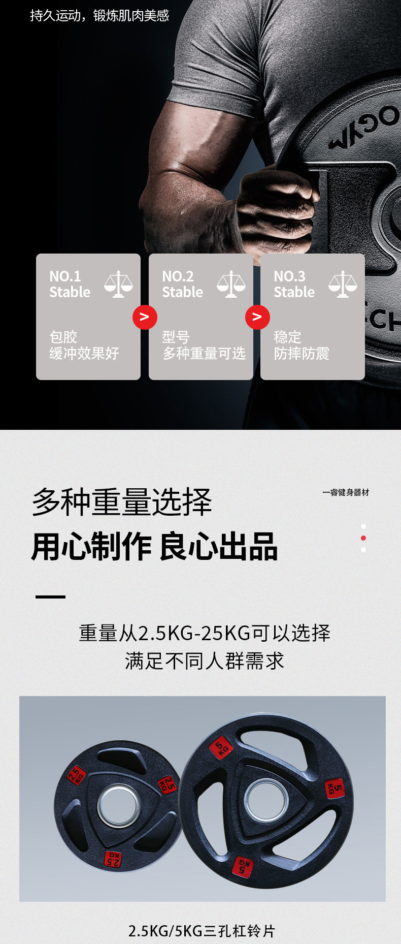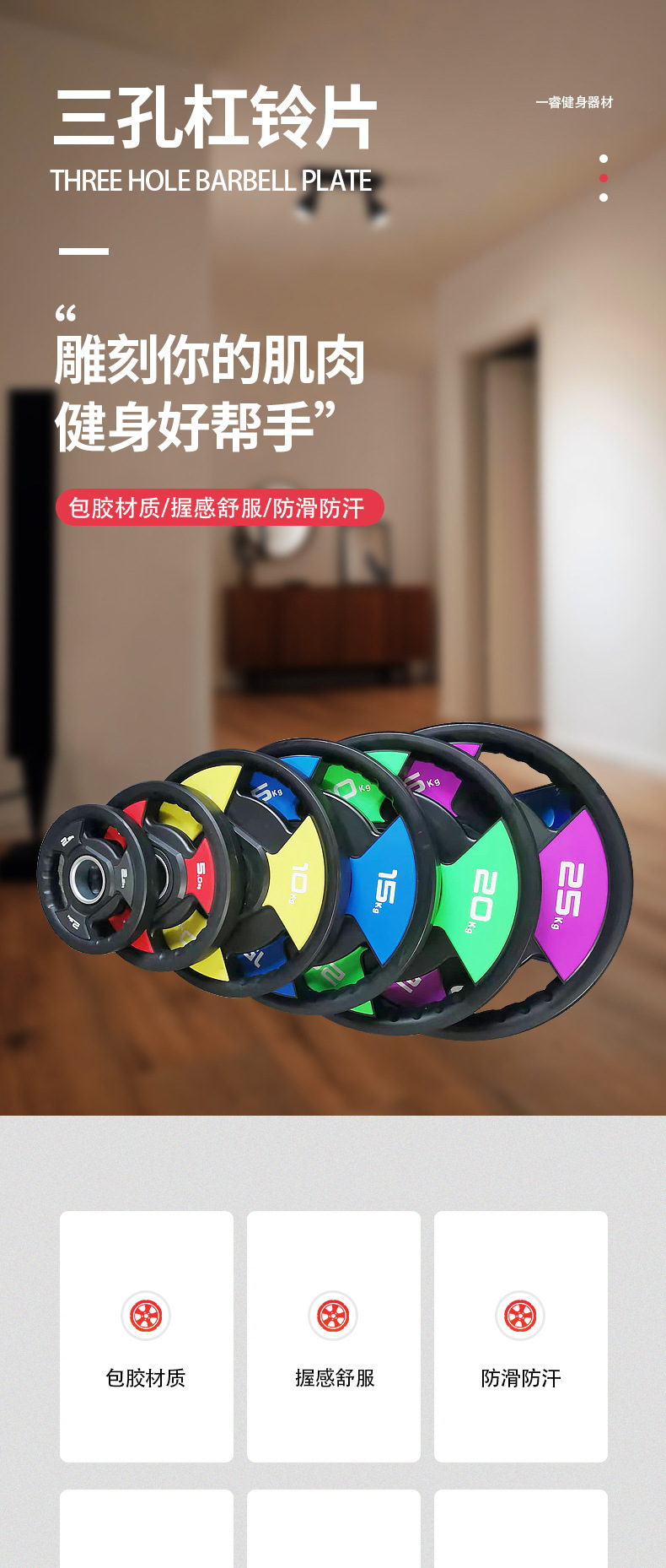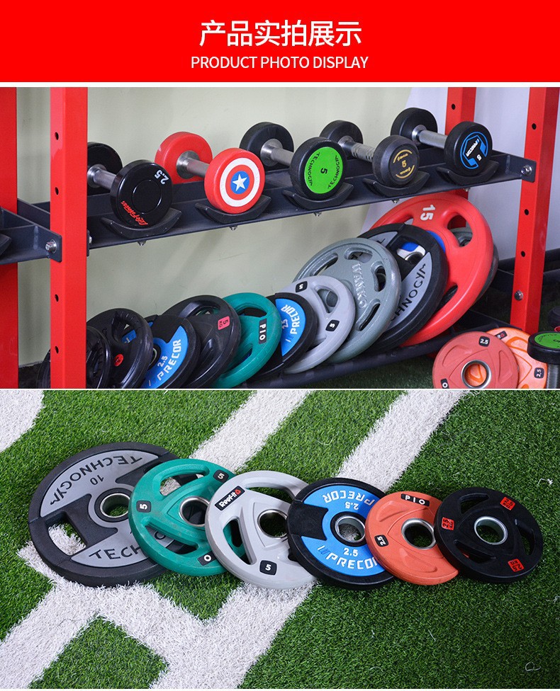Tres y cuatro agujeros de hierro fundido revestido de barras de peso gimnasio de peso de polo austríaco pieza de campana voladora gran agujero cuatro fuerza de pieza de tendón