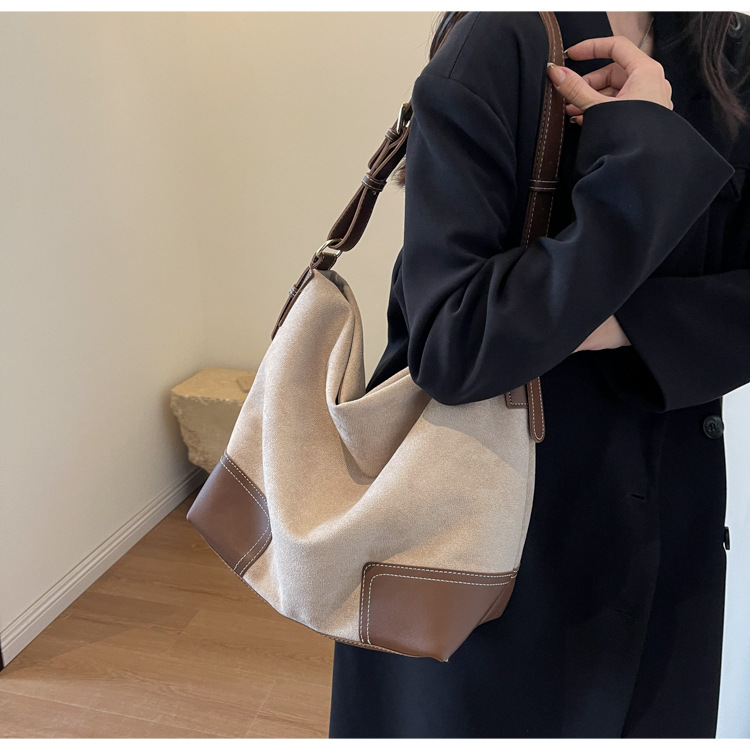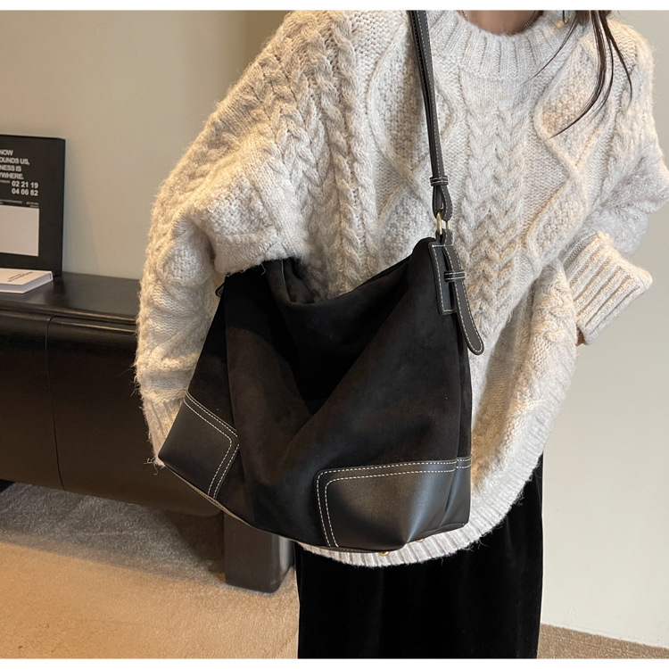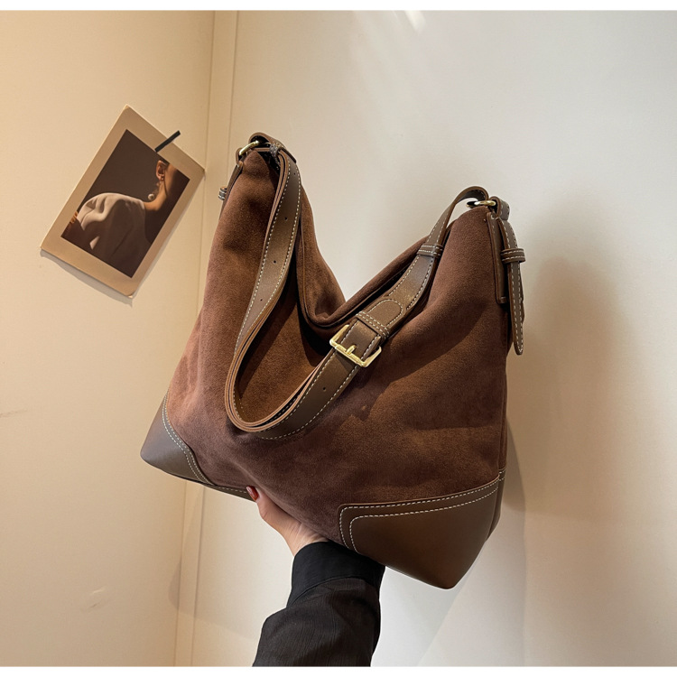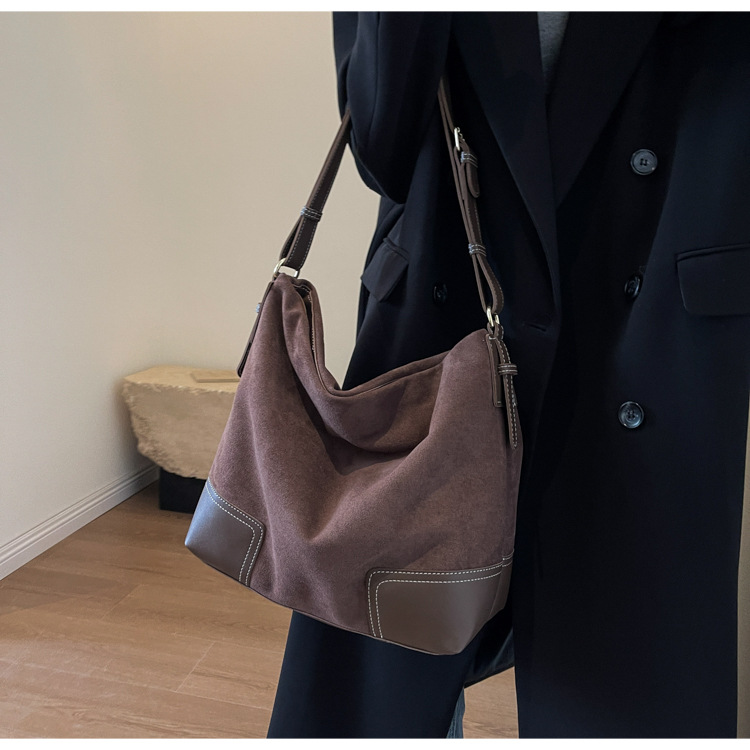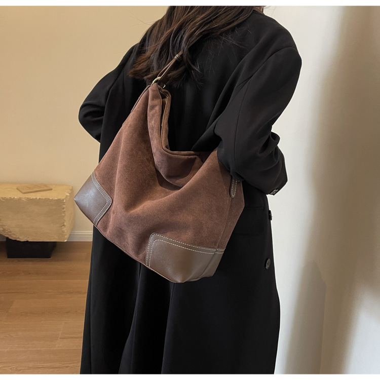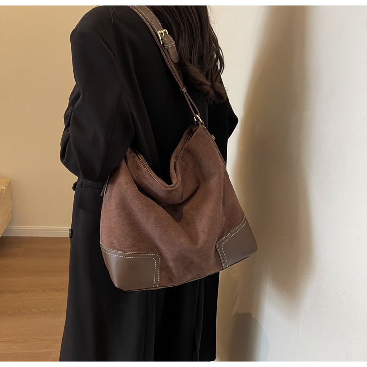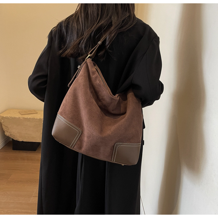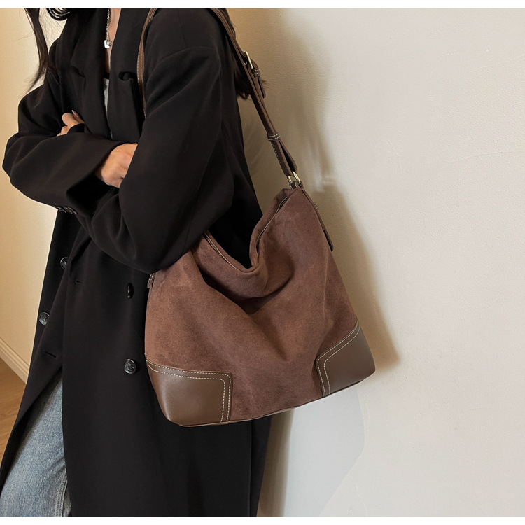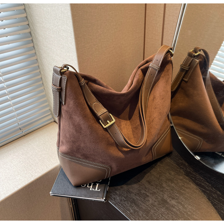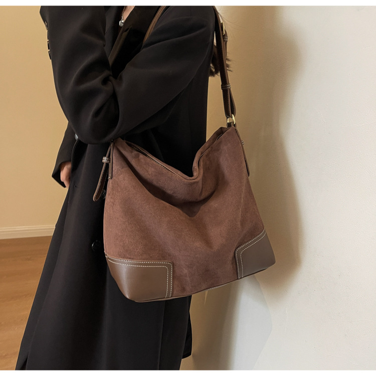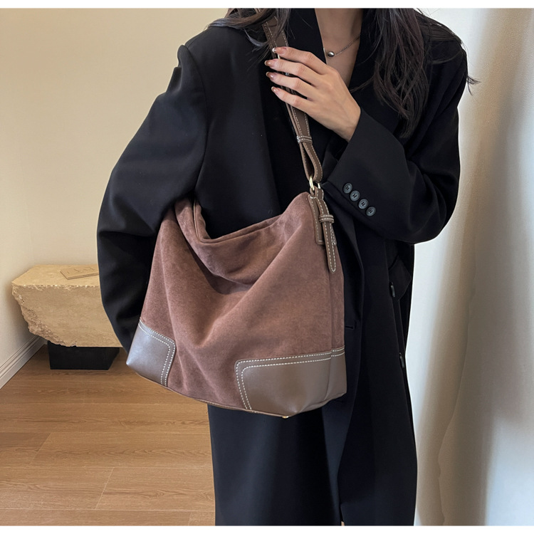 Bolso de ante retro de gran capacidad, novedad de otoño e invierno 2025, bolso de mujer, bandolera, bolso de mano popular para ir al trabajo