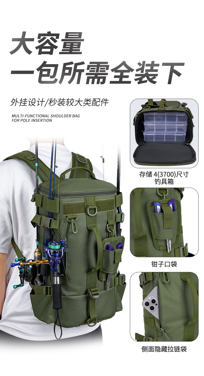 Bolsa de transporte transfronterizo multifuncional de separación seca y húmeda bolsa de pesca de alta capacidad mochila al aire libre montaje de elevadora de pesca