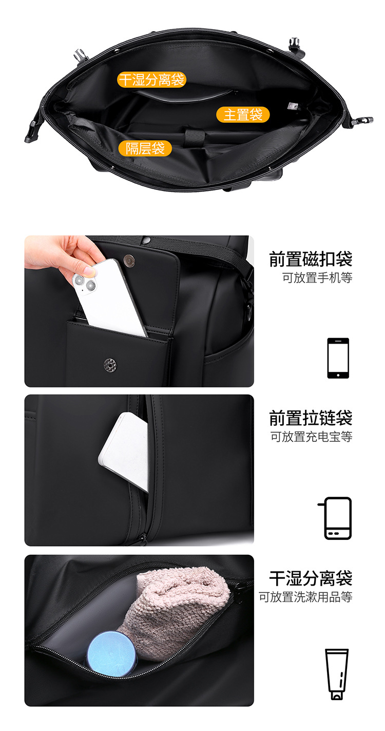 Bolsa de viaje de negocios de moda para hombres, bolsas deportivas al aire libre de gran capacidad, bolsas de maleta de viaje de bolsillo.