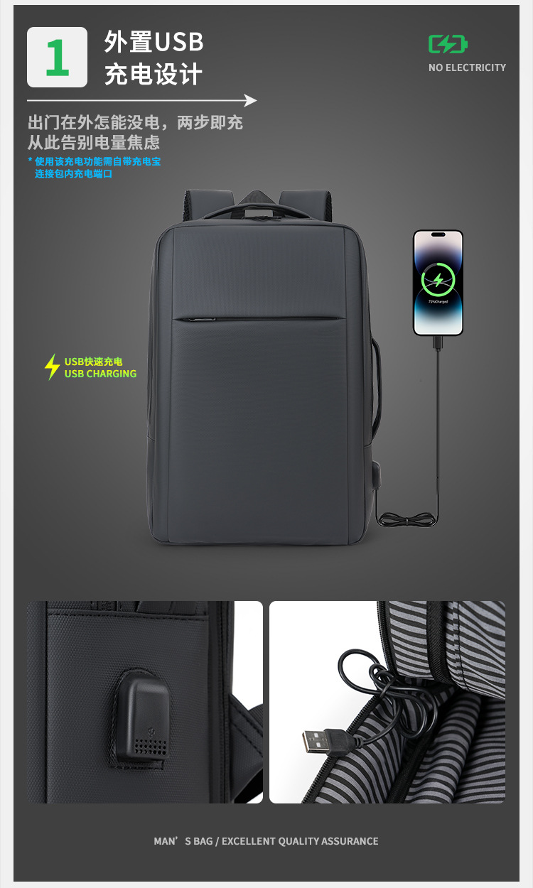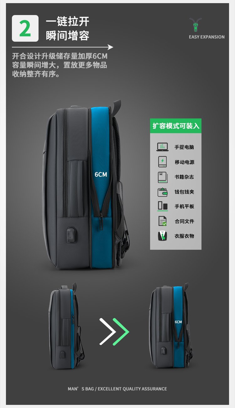Mochila de viaje de negocios expandible para hombres bolsas portátiles multifuncionales de viaje de negocios USB mochila de viaje