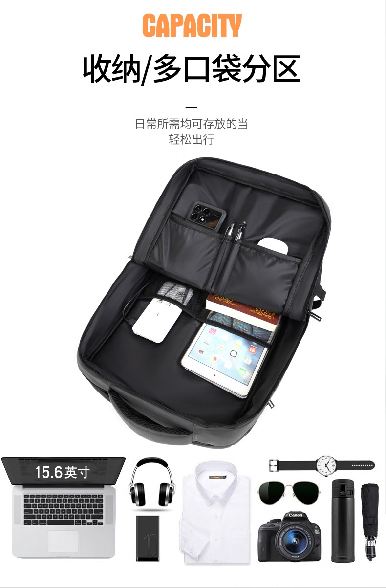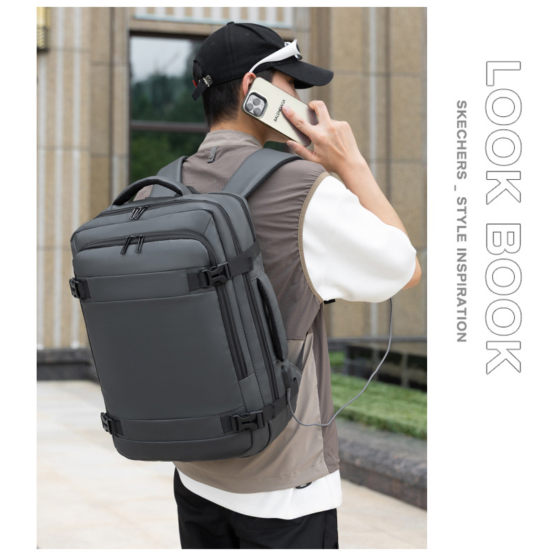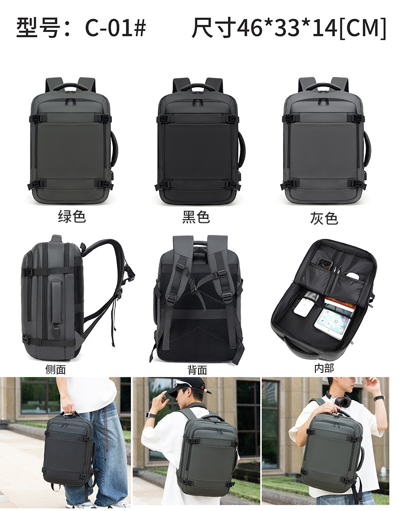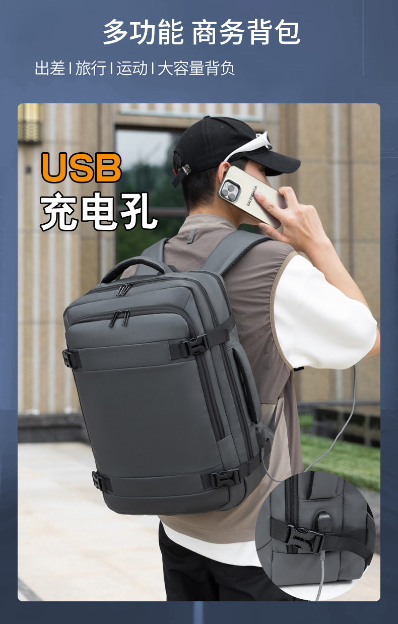 Otoño mochila de ocio de negocios de gran capacidad de color sólido USB anti-derramamiento bolsa de computadora colgar tirón bolsa de viaje de negocios