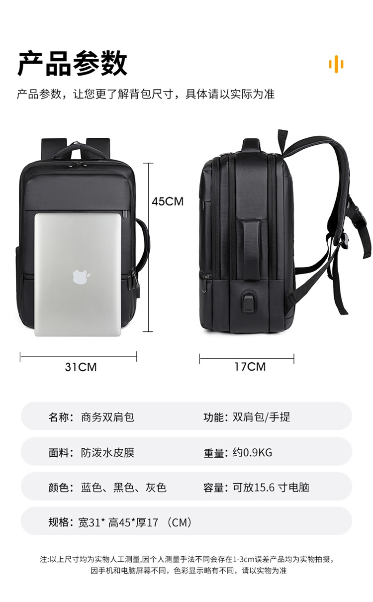 Nueva película de cuero a prueba de rociamientos mochila de gran capacidad de viaje de negocios colgante barra de tracción de embarque bolsa de computadora interfaz USB bolsa de viaje