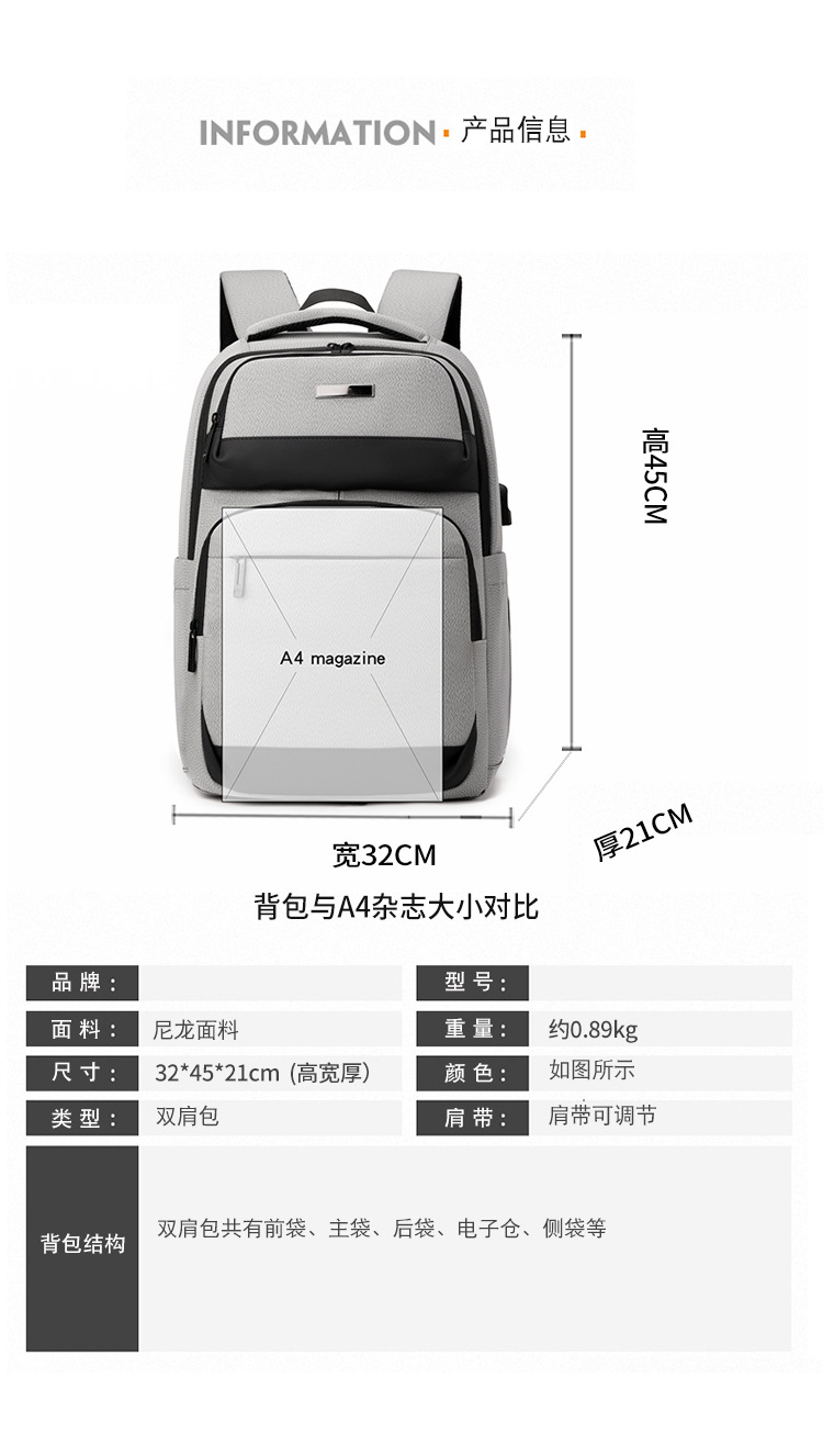 Mochila de gran capacidad, mochila de negocios para hombres, mochila de viaje de viaje, mochila de viaje, mochila deportiva
