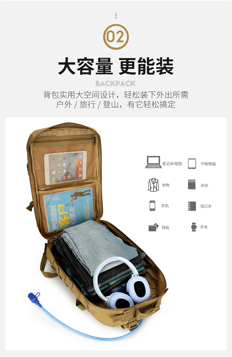 Mochila táctica multifuncional transfronteriza nueva bolsa de montañismo de gran capacidad mochila de camping bolsa de aventura al aire libre de camuflaje de moda