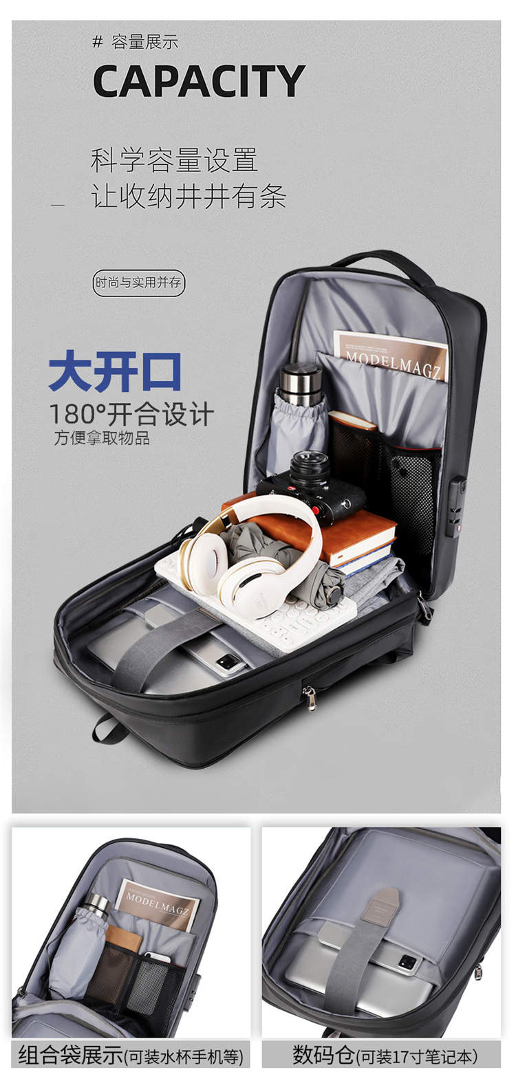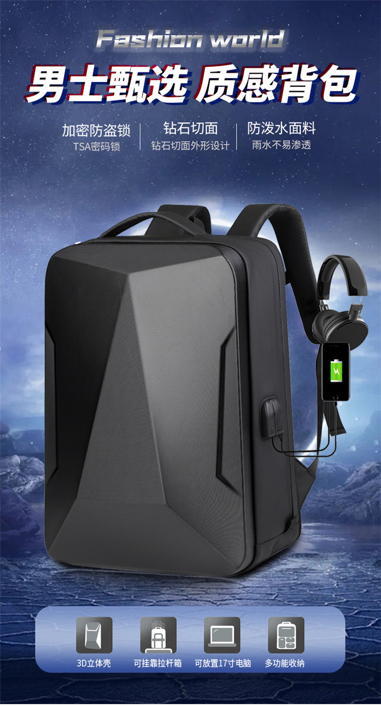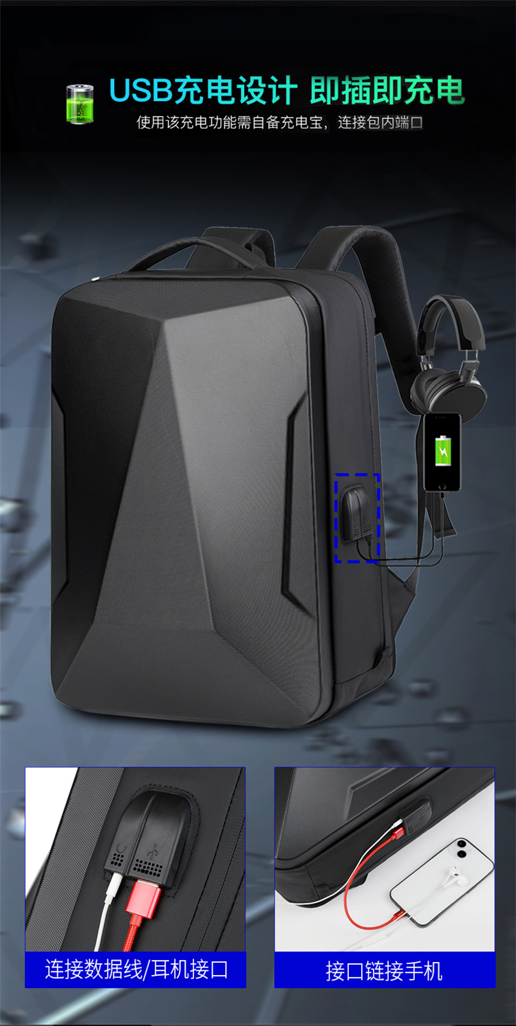 Mochila de corte de cáscara dura para hombres 2025 gran capacidad USB colgar varilla de tracción a prueba de rociamientos mochila de negocios al por mayor