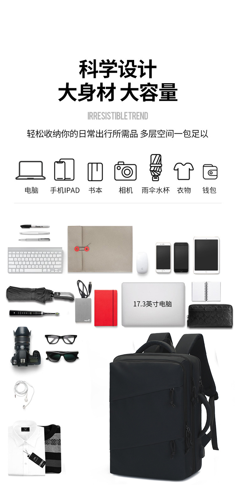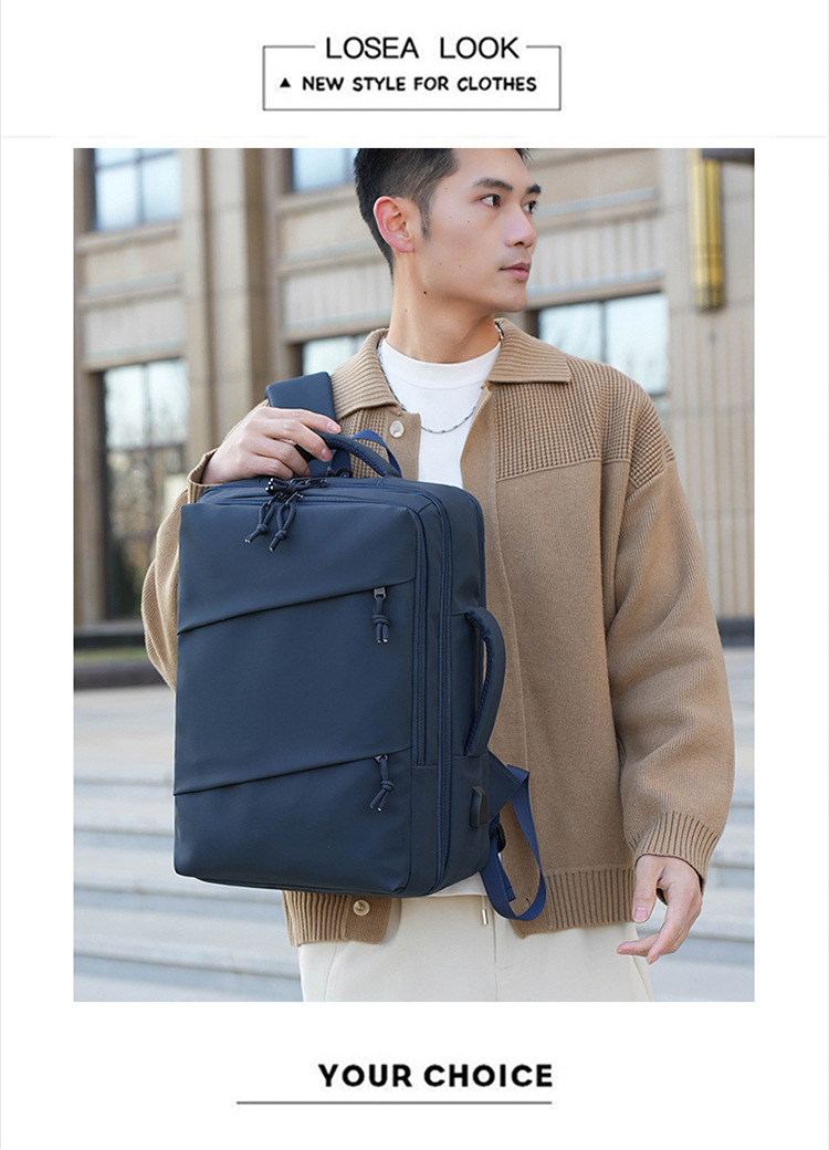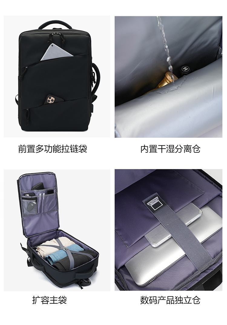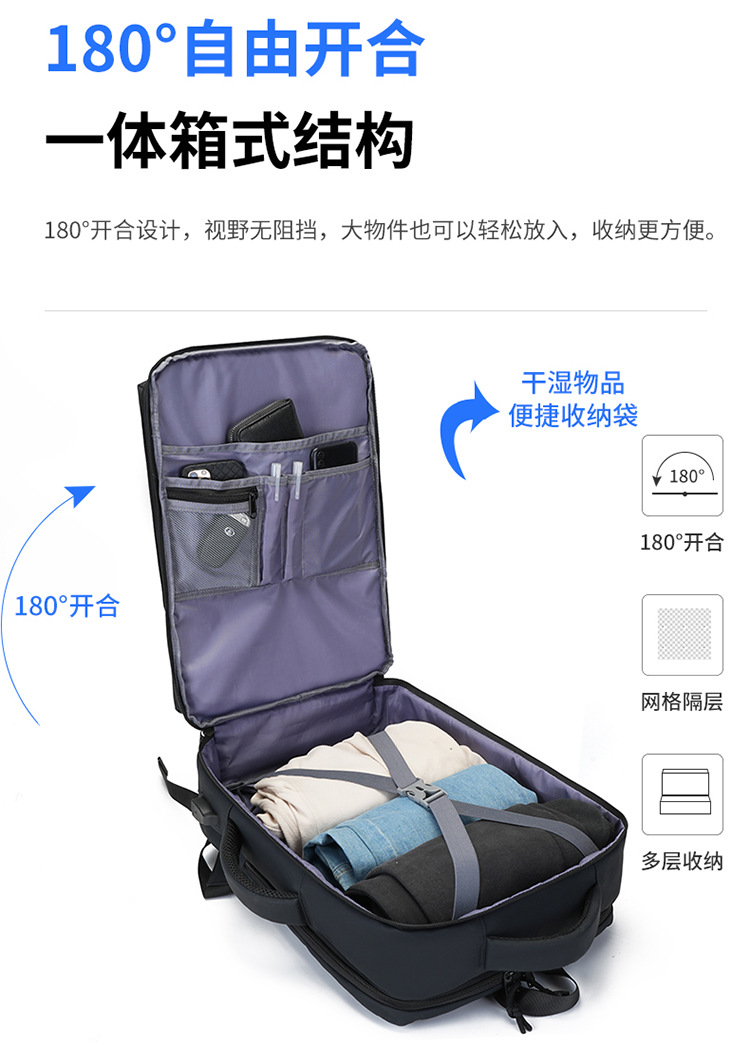 Mochila de negocios transfronterizos USB separación seca y húmeda multifuncional de salida tipo caja de abertura y cierre bolso de mano de gran capacidad