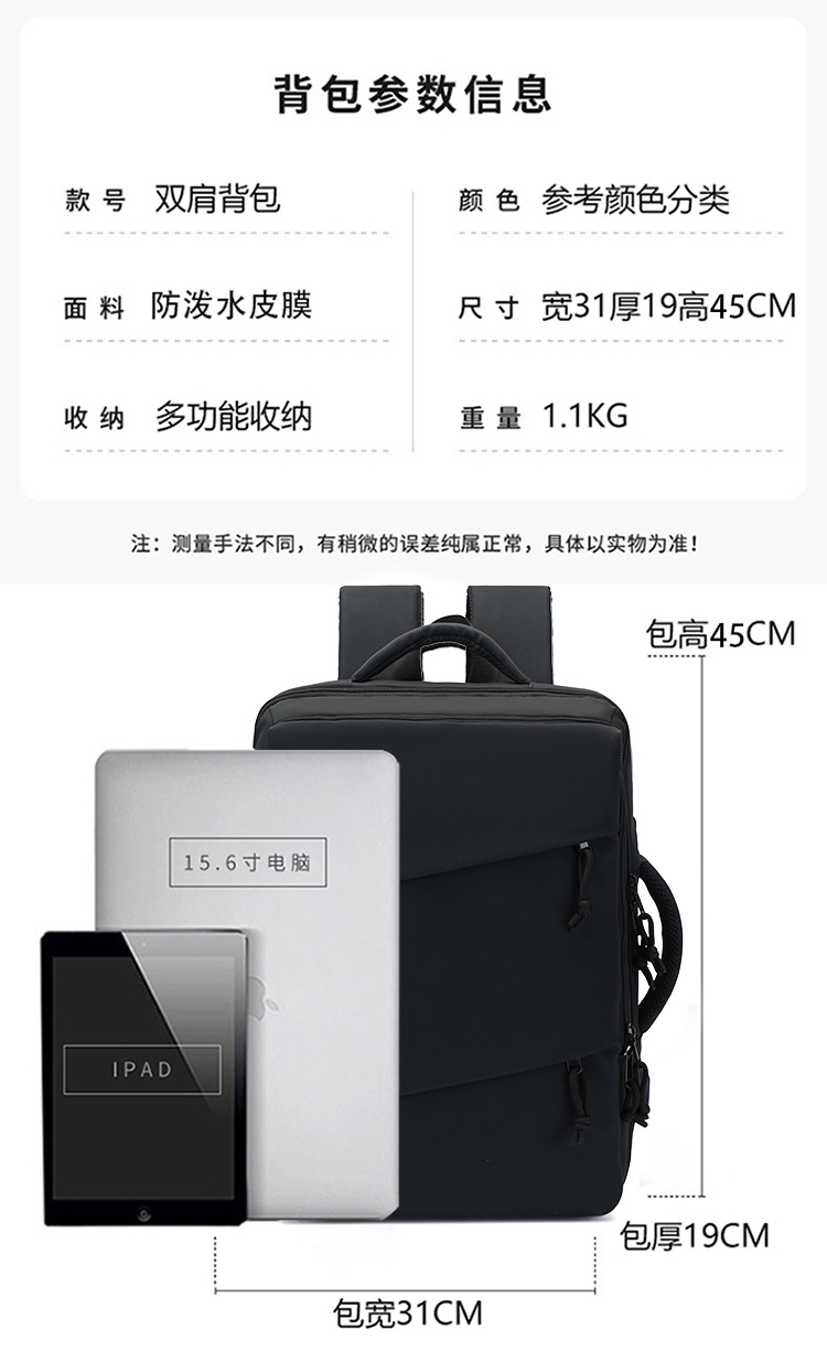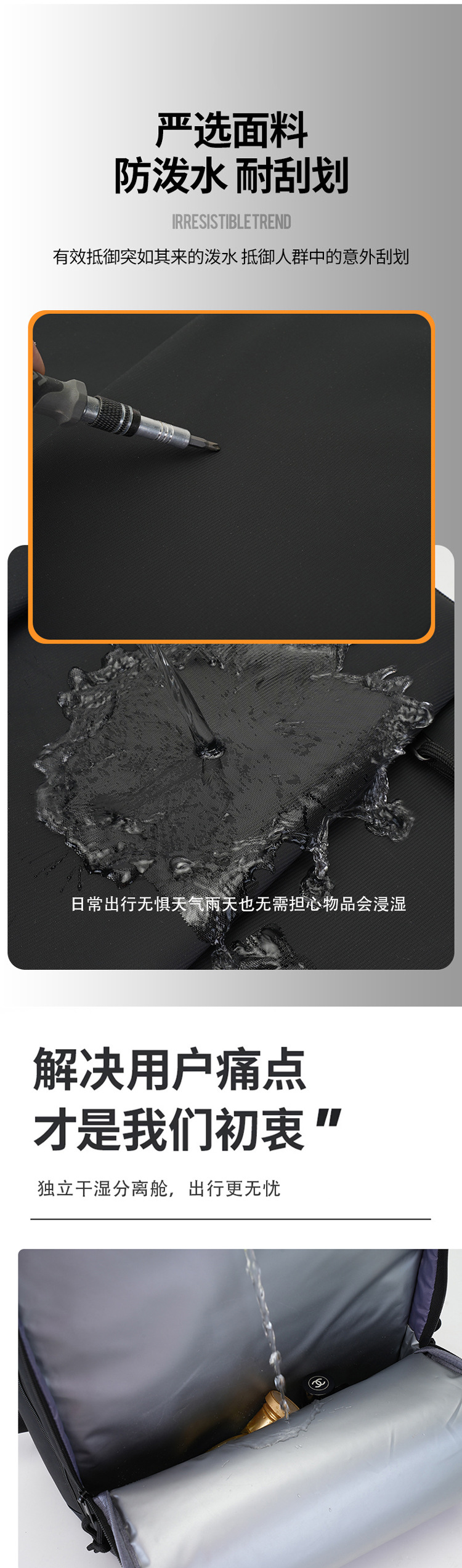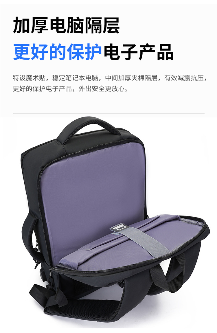 Mochila de negocios transfronterizos USB separación seca y húmeda multifuncional de salida tipo caja de abertura y cierre bolso de mano de gran capacidad