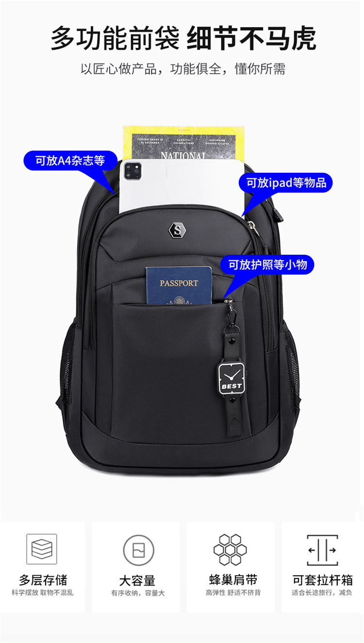 Mochila de gran capacidad Bolso multicompartimento para hombre Mochila deportiva Bolso de computadora para estudiantes universitarios Bolso de viaje con barra de tracción colgante
