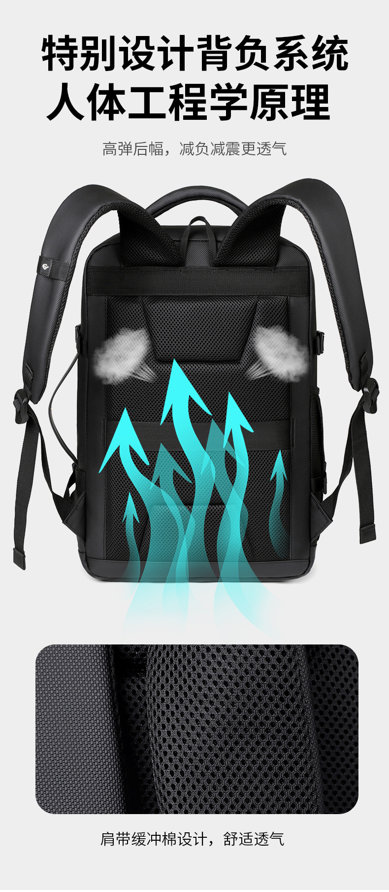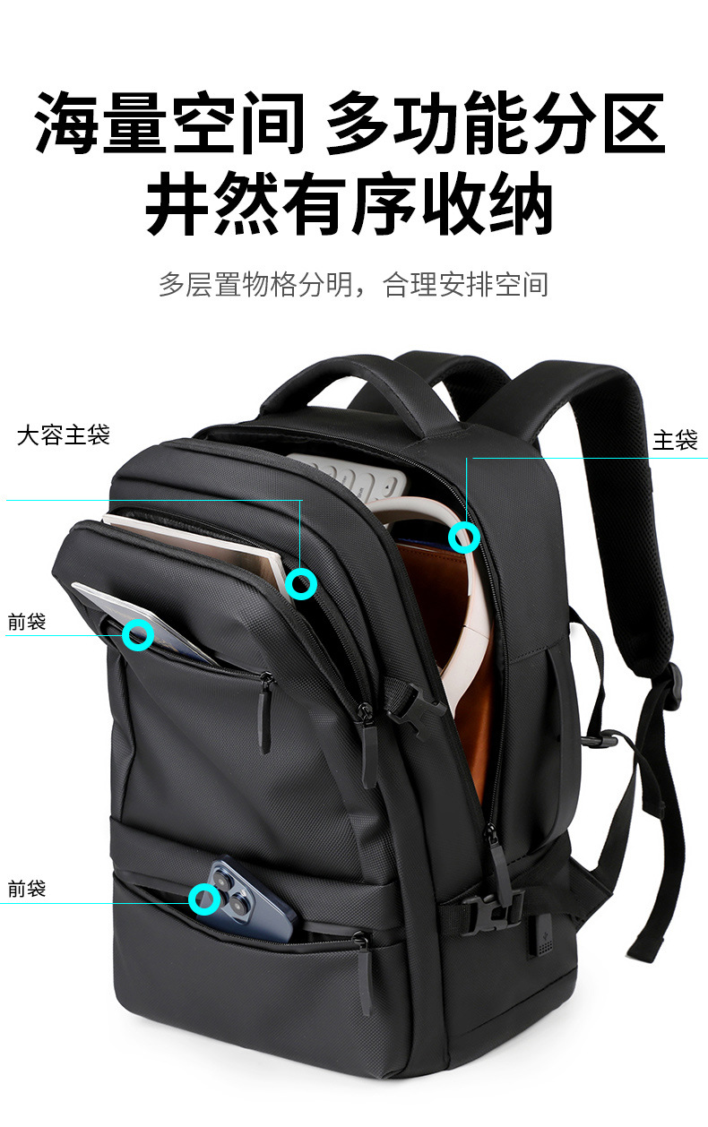 Mochila de negocios multifuncional para hombres, bolsa de computadora portátil con textura de película simple, mochila de gran capacidad para viajes de negocios de corta distancia
