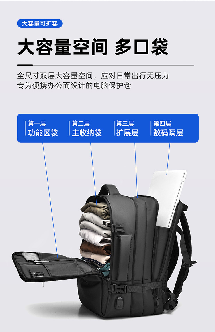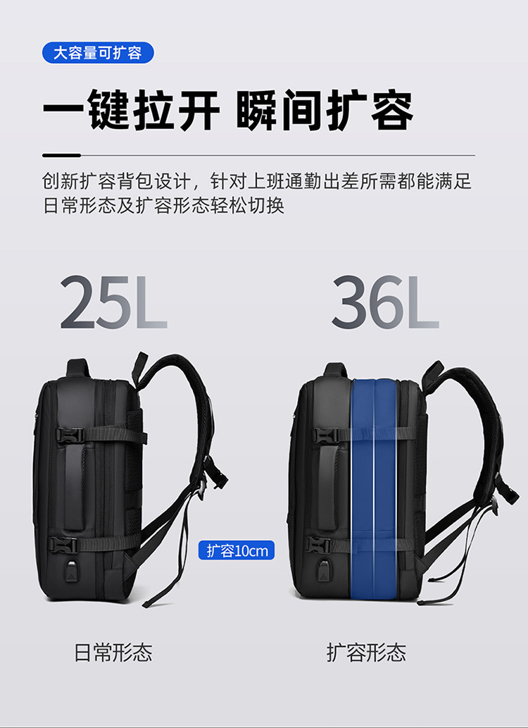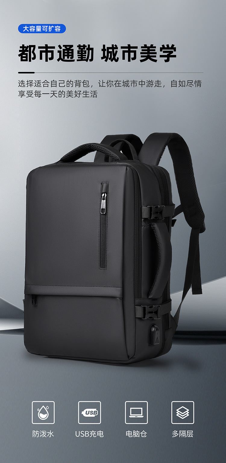 Mochila de hombro simple de color sólido 2025, bolsa de negocios expandible de gran capacidad, bolsa de viaje de viaje casual