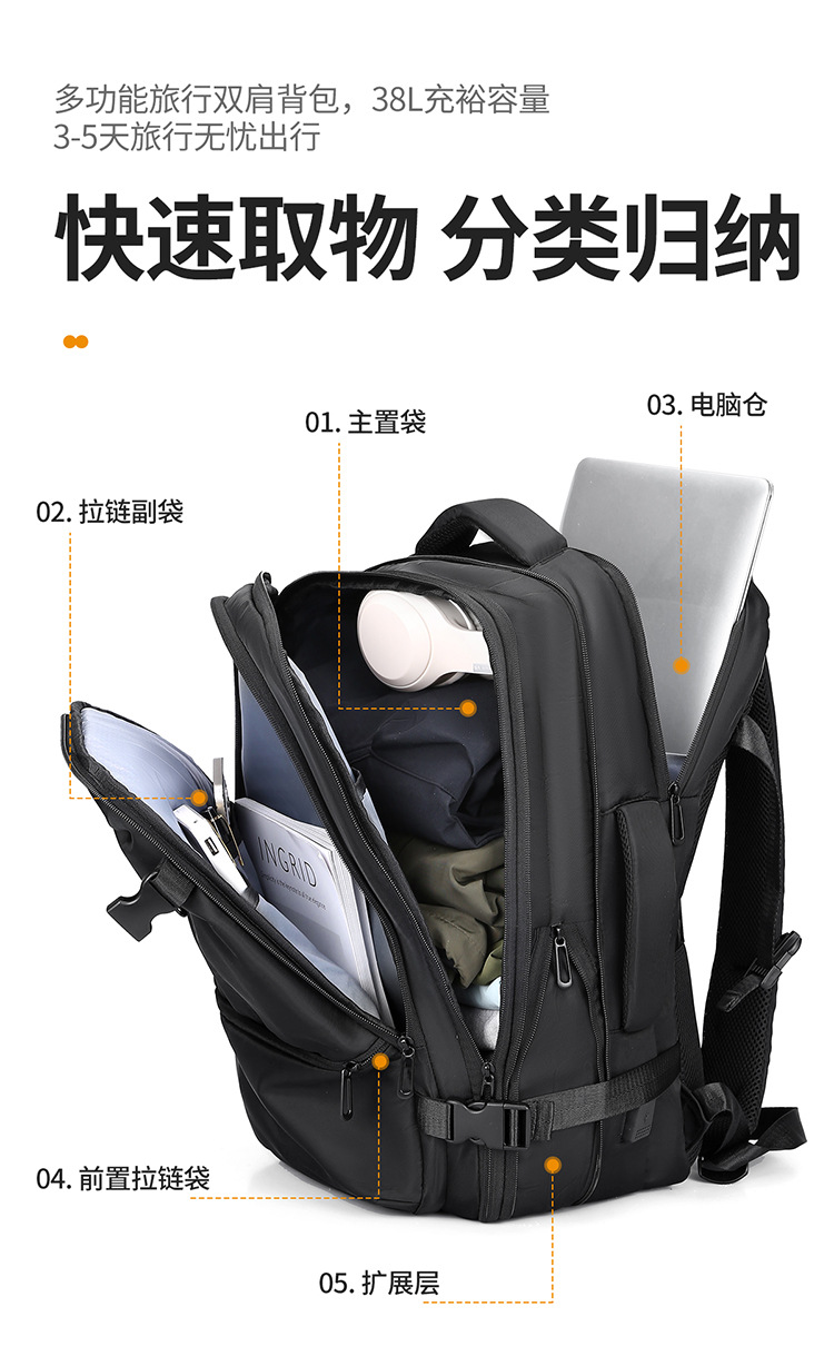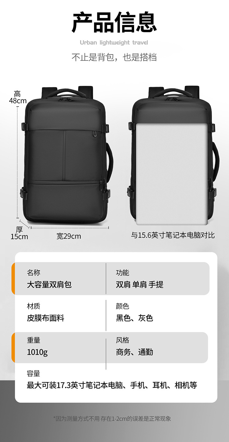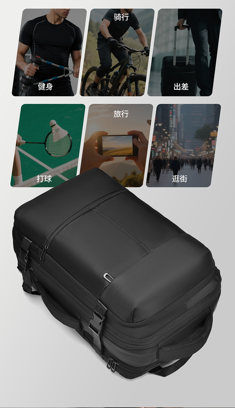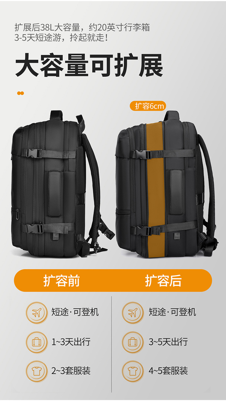 Mochila expandible 180 ° apertura y cierre para viajes de negocios, bolsa para computadora portátil, barra de acoplamiento colgante, bolsa de viaje de negocios al por mayor