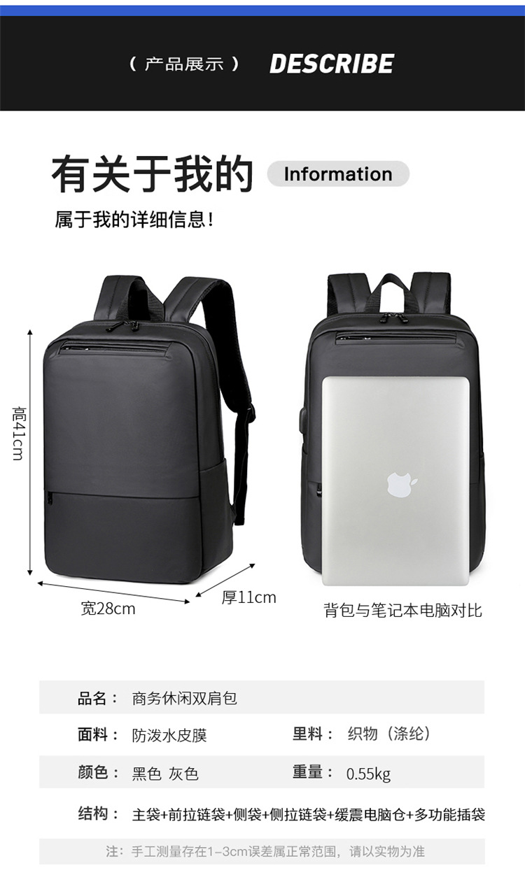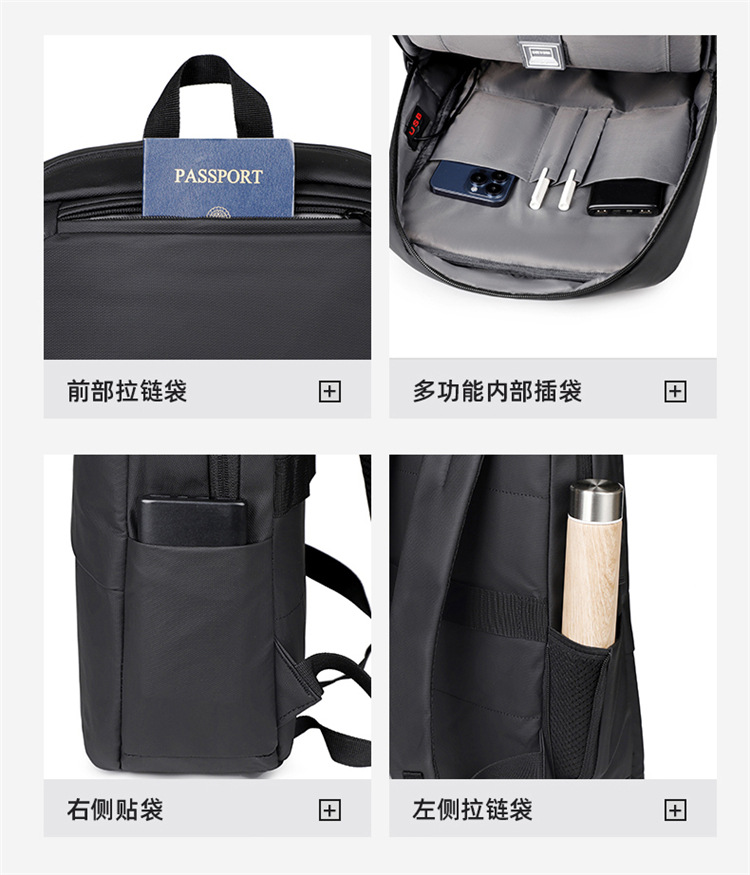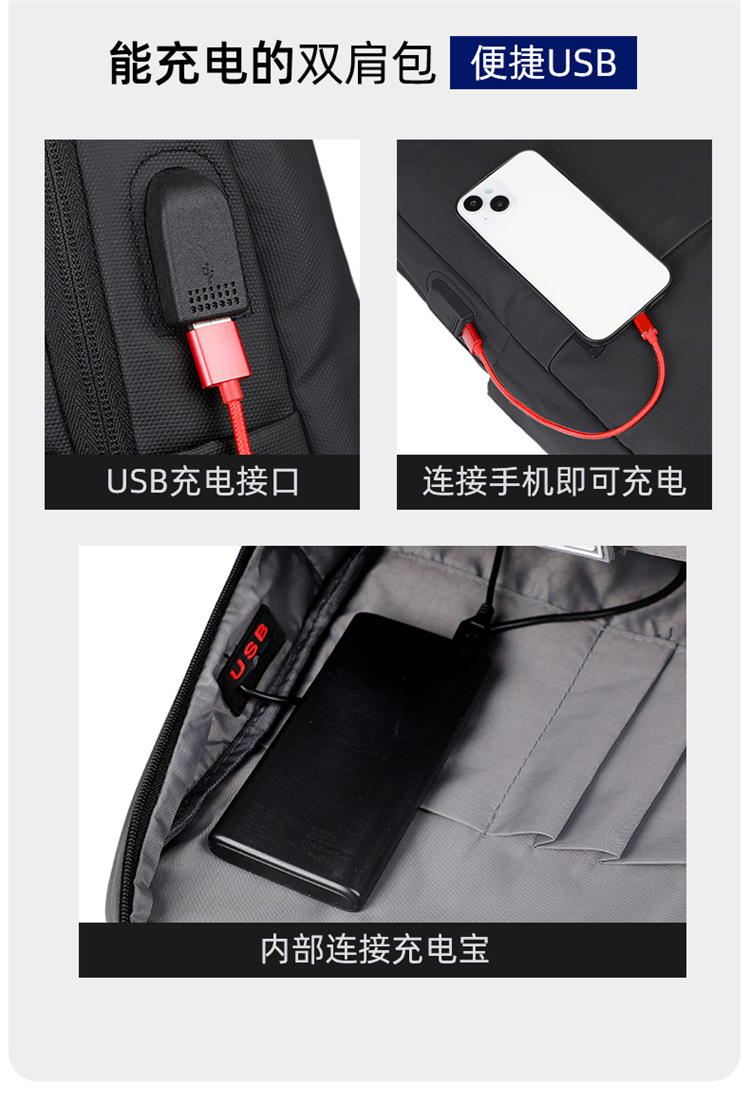 Mochila de negocios de gran capacidad para hombres nueva bolsa de computadora de oficina de color sólido simple interfaz USB mochila de negocios