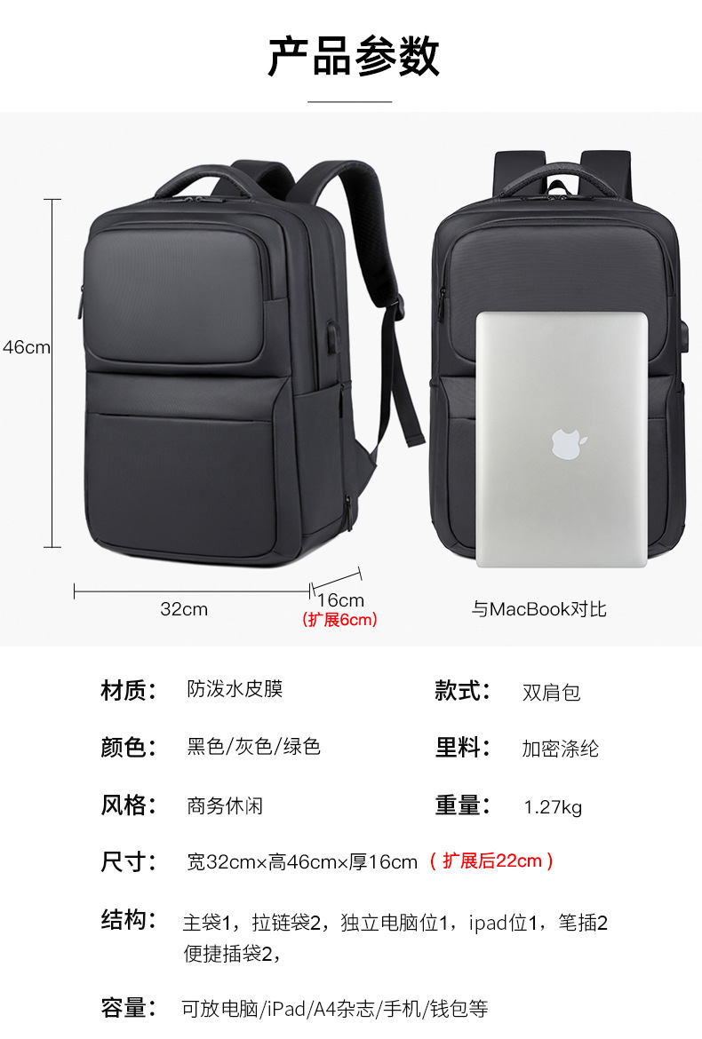 Otoño e Invierno nueva mochila de cuero película de negocios bolsa de ordenador bolsa de viaje de gran capacidad mochila multifuncional mochila