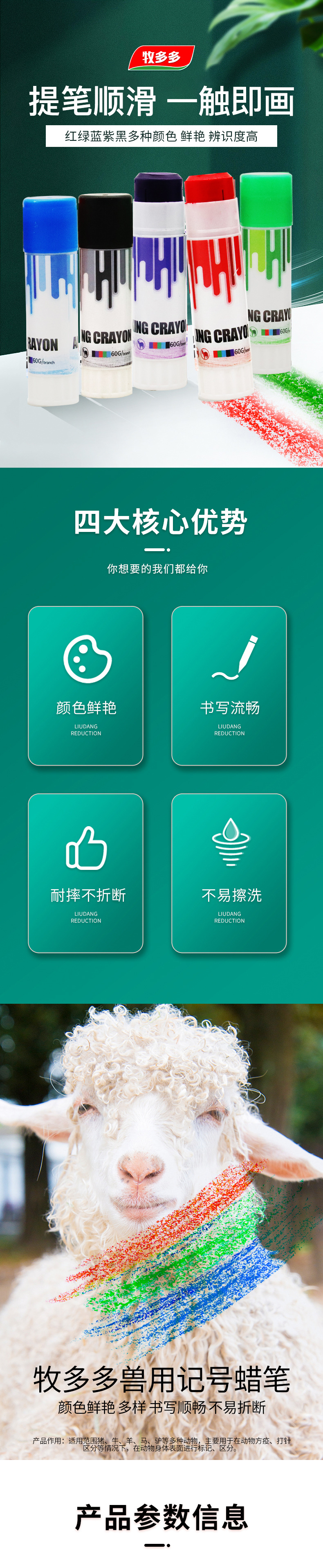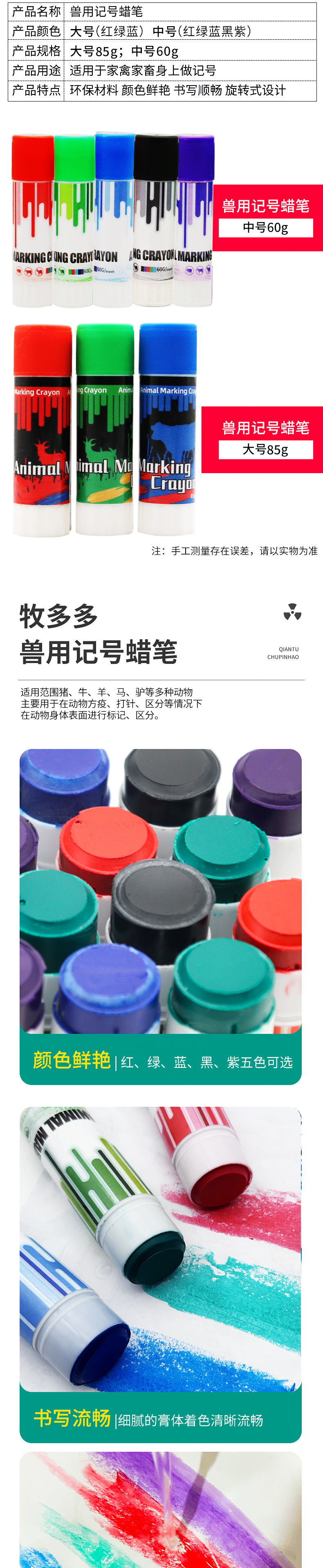 Crayones de cinco colores para marcar animales, rojo, verde, azul, negro, morado, marcadores para animales, crayones para el cuerpo de cerdos para cría y prevención de epidemias.