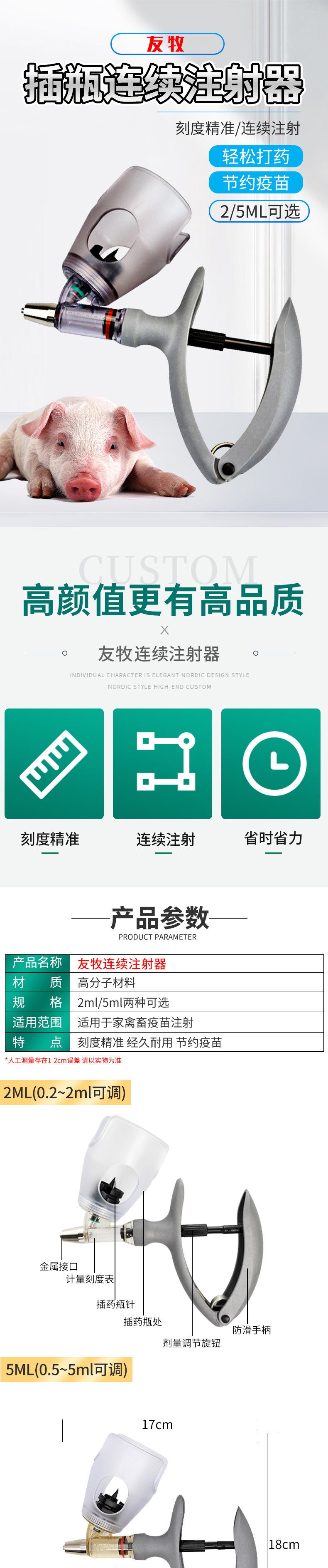 Jeringa continua veterinaria Muduoduo, jeringa continua ajustable para cerdos, ganado vacuno, ovejas, pollos y patos, jeringa para vacunas con aguja