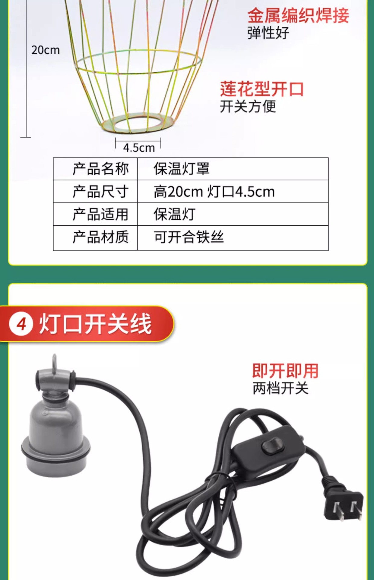 Lámpara de Calor para Cría de Pollitos, Cubierta para Lámpara de Calor, Juego de 5 Piezas, Impermeable, a Prueba de Explosiones, Equipo para Ganadería