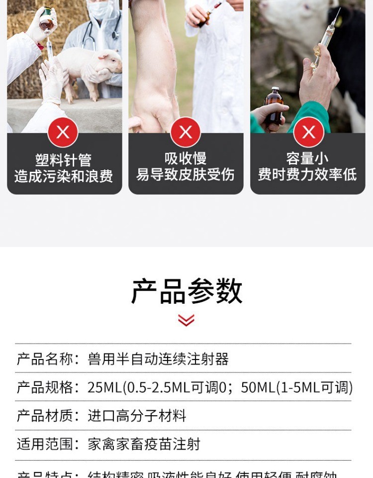 El cerdo semiautomático de la jeringuilla veterinaria, el ganado vacuno y las ovejas importaron el equipo continuo ajustable de la cría del arma de la inyección de la vacuna
