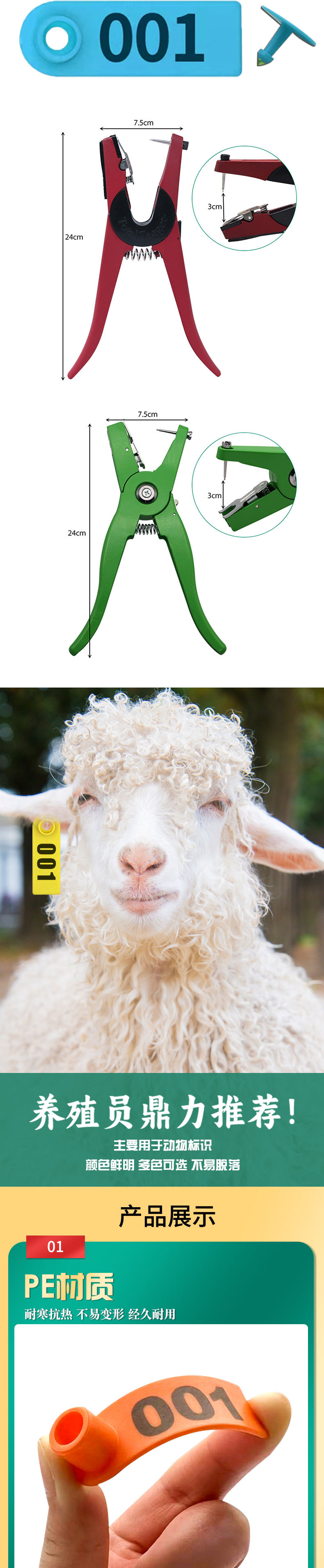 Ovejas etiqueta siete-color PE anti-caída de oído número placa veterinaria oído etiqueta alicates conjunto completo de equipo de identificación de cría de animales láser con palabras