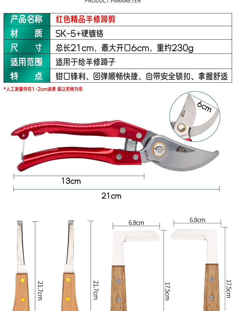 | Especificaciones del producto | Ovejas Rojas recortadora de pezones,Tijeras de recorte de casco rojo + cuchillo recto izquierdo,Tijeras de corte de pezuñas Rojas + cuchillo recto derecho,Tijeras de corte de pezón rojo + machete de mano izquierda,Tijeras de recorte de cascos rojos + machete derecho,Pezuña roja recorte tijeras + mano izquierda y derecha cuchillo recto,Tijeras de recorte de casco rojo + machete de mano izquierda y derecha |