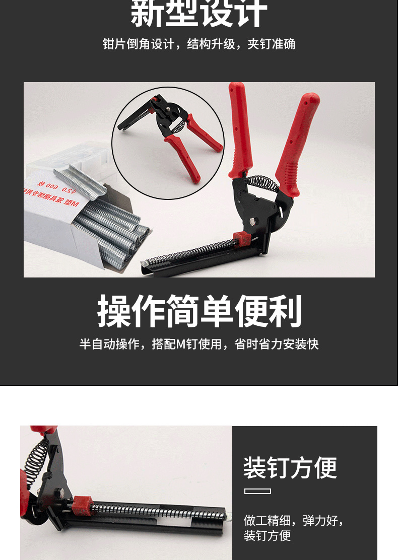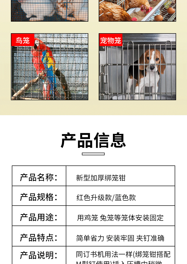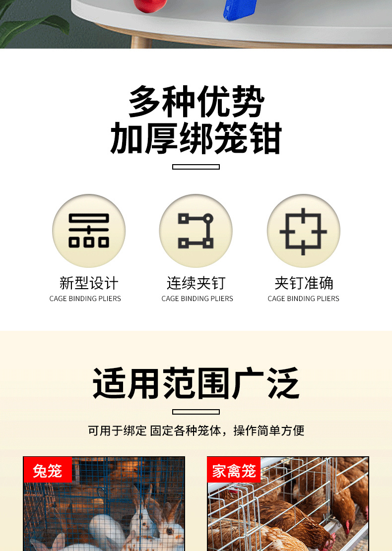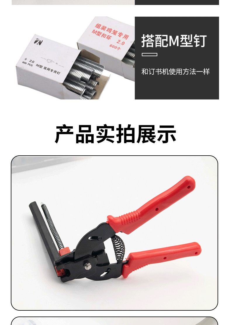 Abrazadera de jaula semiautomática nuevo anti-óxido M conjunto de uñas hebilla cría jaula de pollo jaula de conejo engrosada alicates de jaula grande