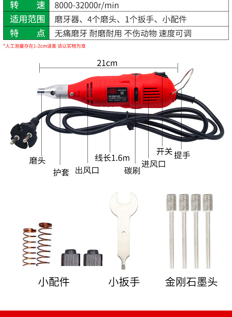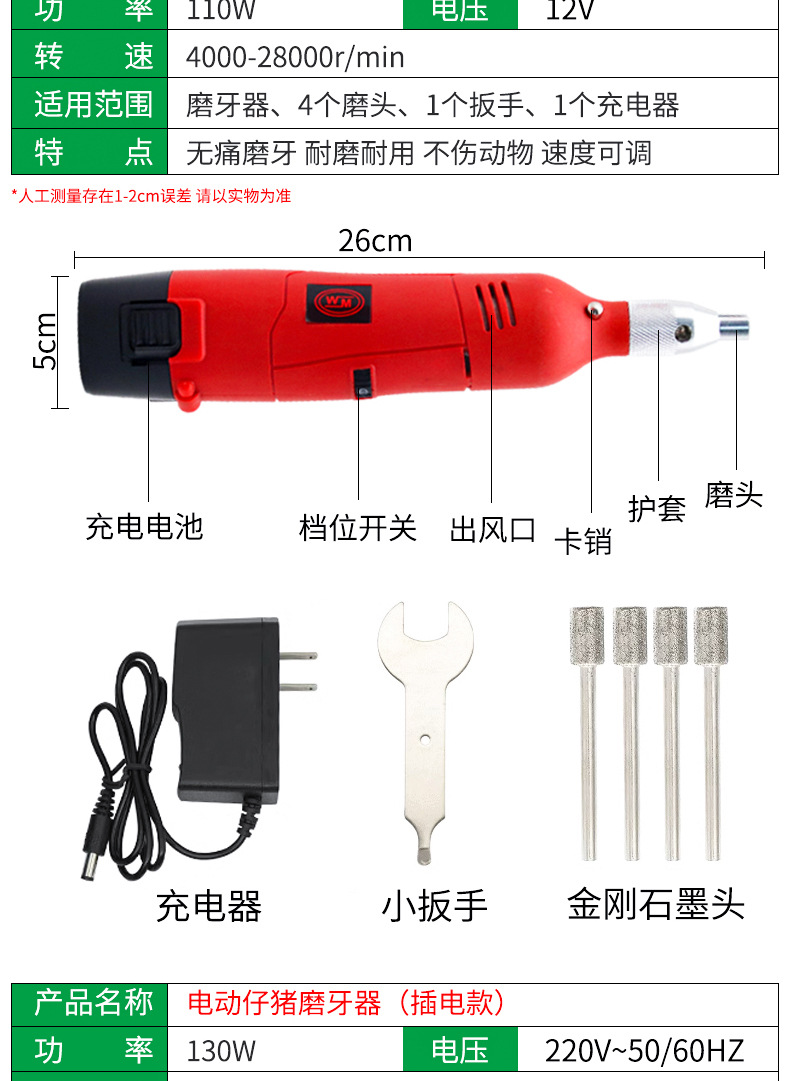 máquina de molienda de dientes veterinaria cerdo, perro, gato, hámster, mascota, máquina de molienda de dientes eléctrica ajustable de velocidad, herramienta de corte de dientes, equipo de ganado