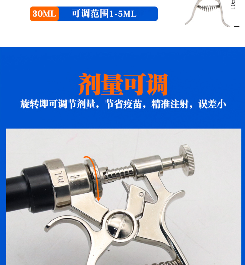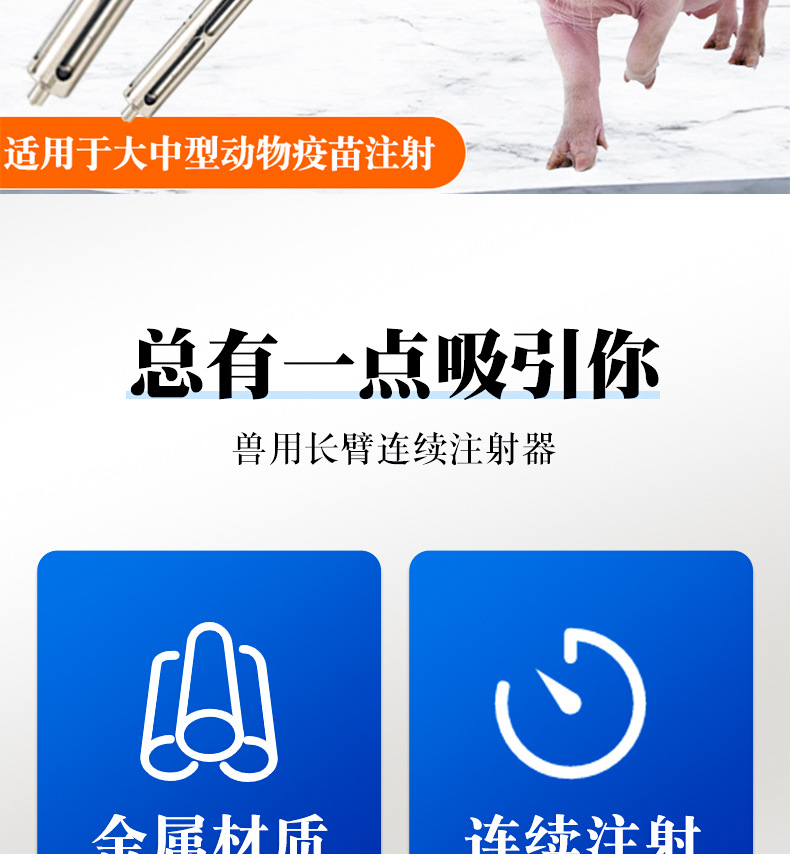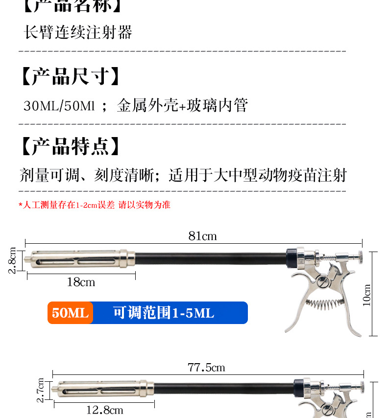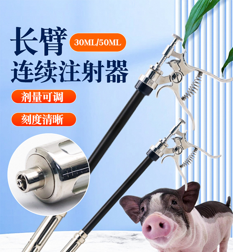 Jeringa de brazo largo veterinario alargada inyección de vacuna continua metal pistola de medicina automática dosis ajustable jeringa de varilla larga