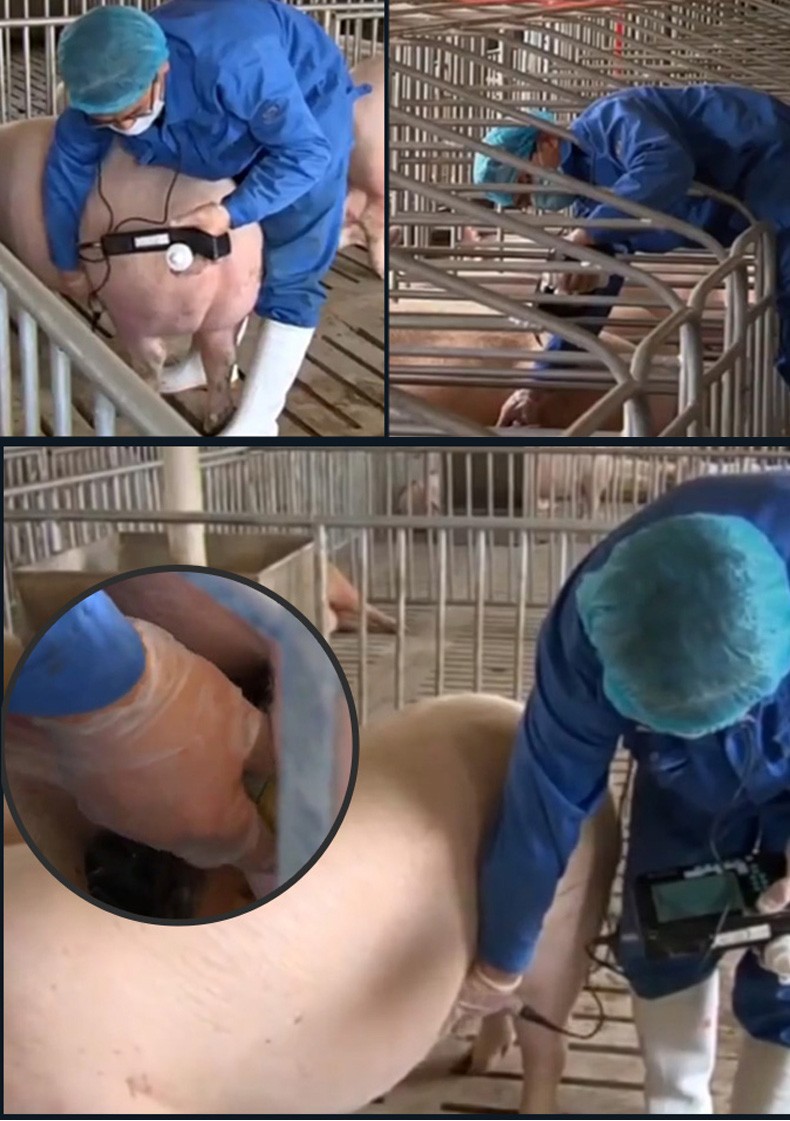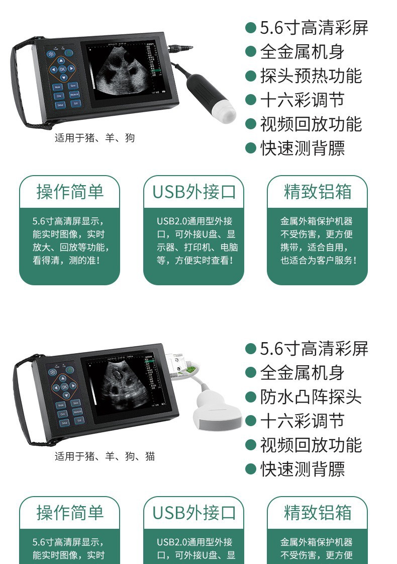 Pig B-ultrasonido máquina cerda embarazo detector cerdo y oveja embarazo diagnóstico veterinario B-ultrasonido embarazo probador 16 color cerdo y oveja B-ultrasonido