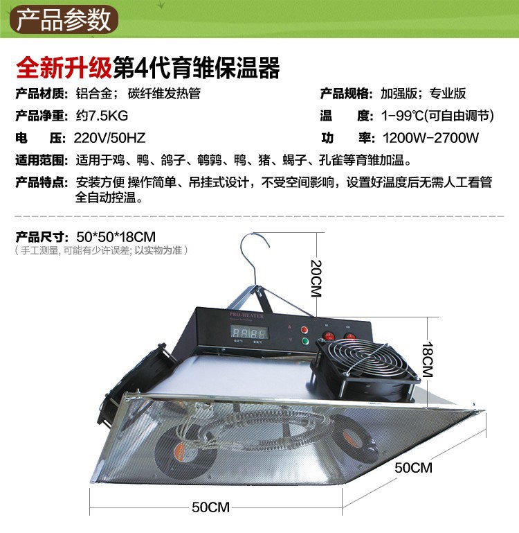 Chick calentador de pollo calefacción cría lechón paraguas inteligente automática lámpara de aislamiento halógeno temperatura ajustable