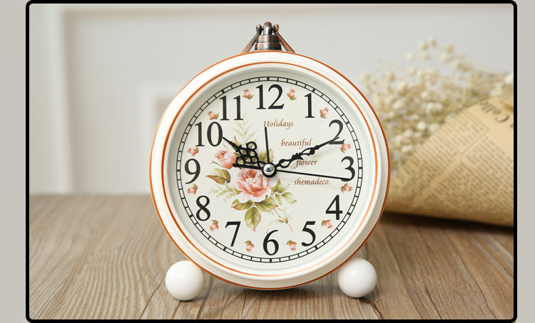 Directo de fábrica nórdico blanco retro metal reloj dormitorio sala de estar decoración reloj despertador decoración de moda al por mayor reloj despertador