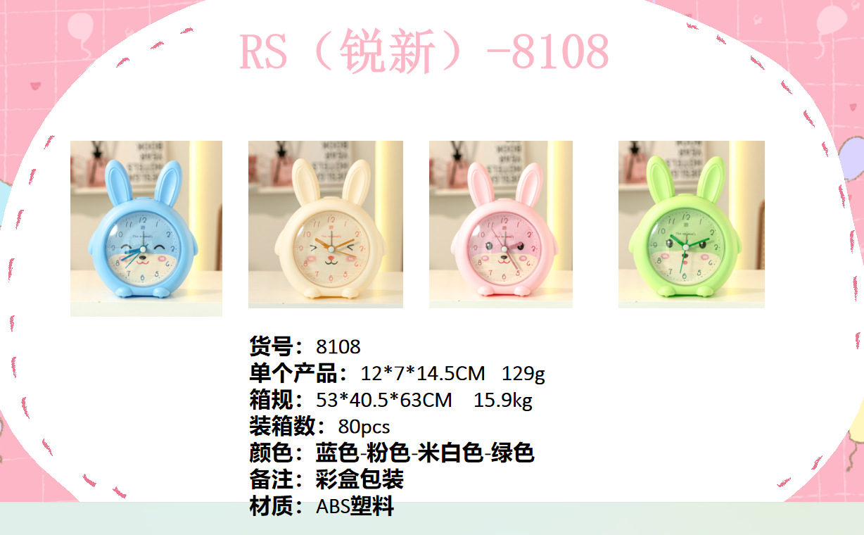 Fábrica directa conejo niño dibujos animados despertador color caramelo silencioso con luz despertador para estudiantes WenChuang reloj despertador especial