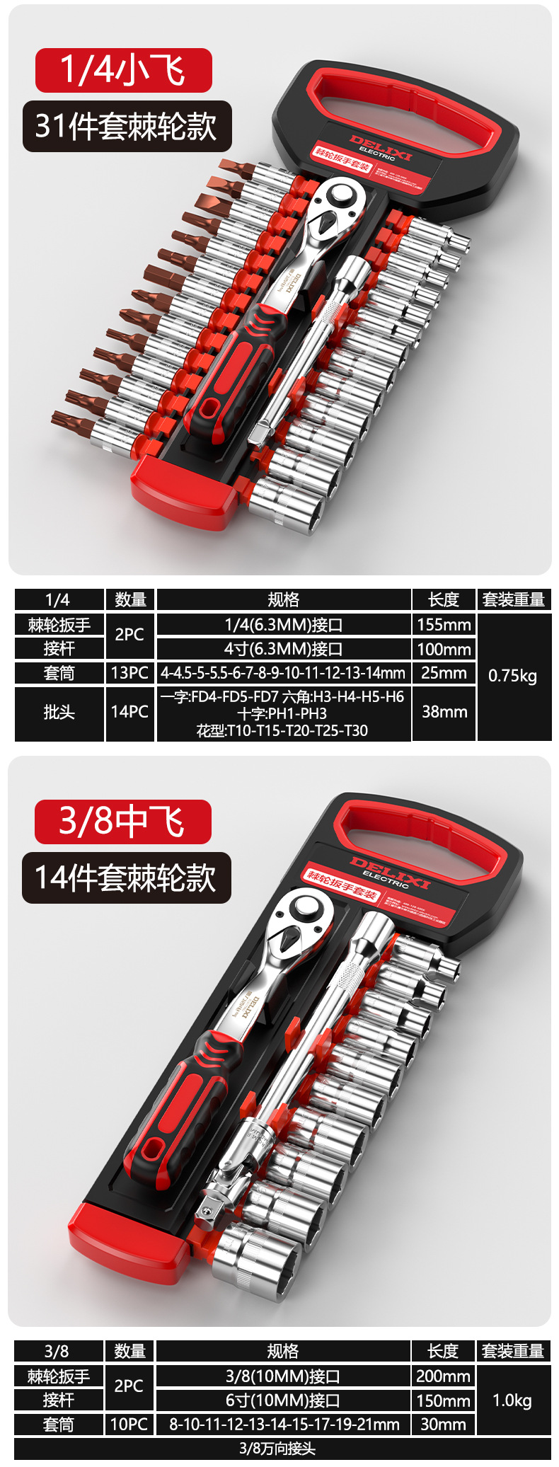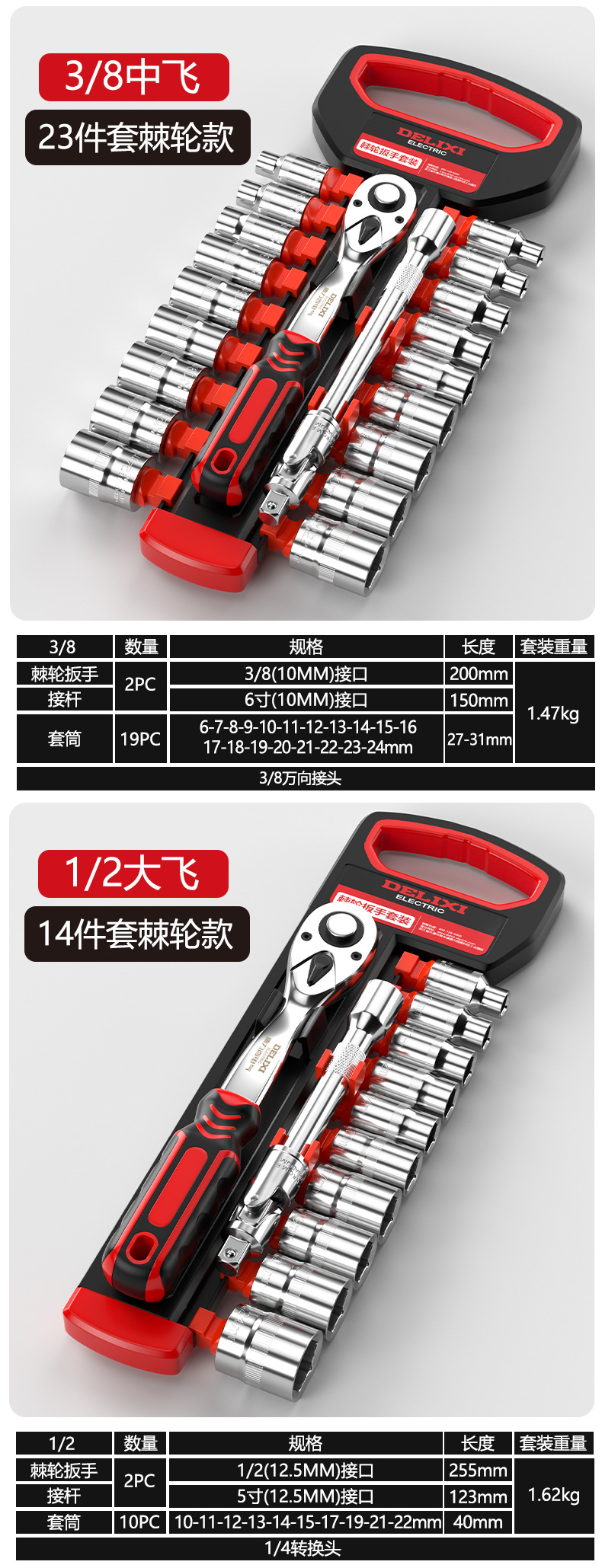 Juego de llave de trinquete de 72 dientes Delixi Electric
