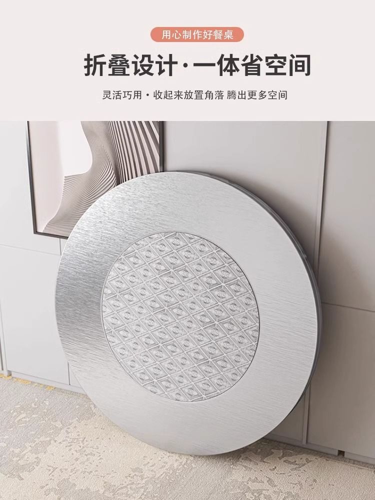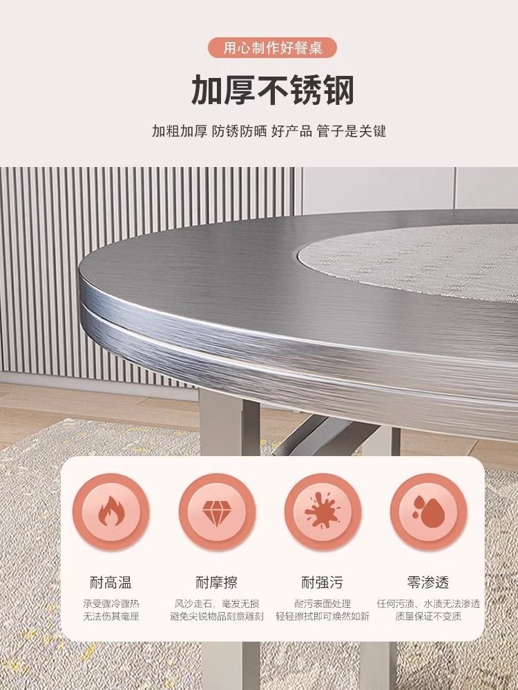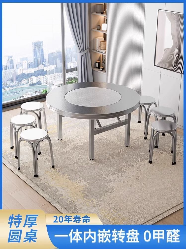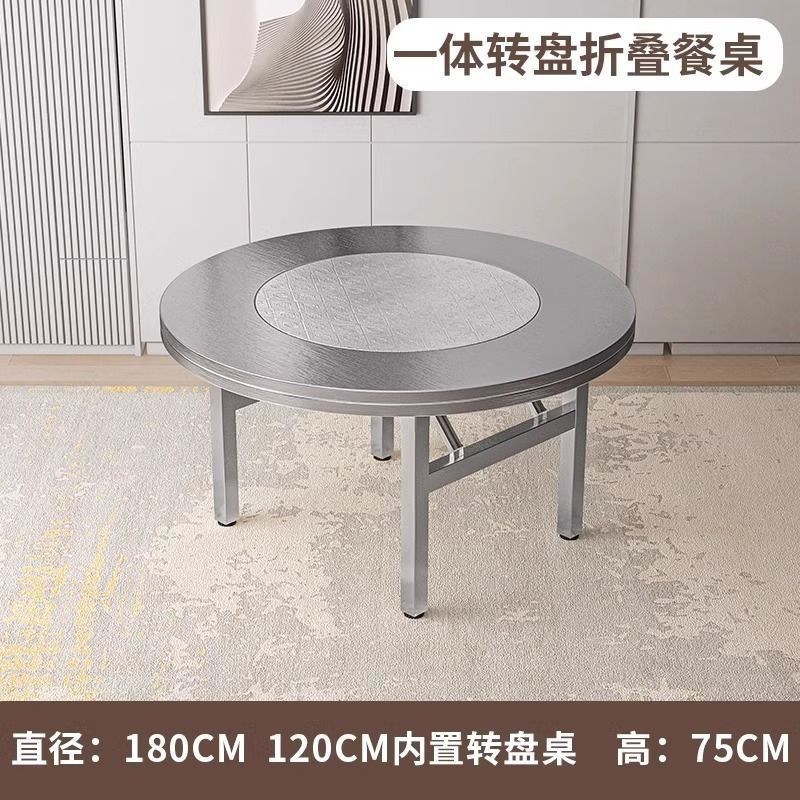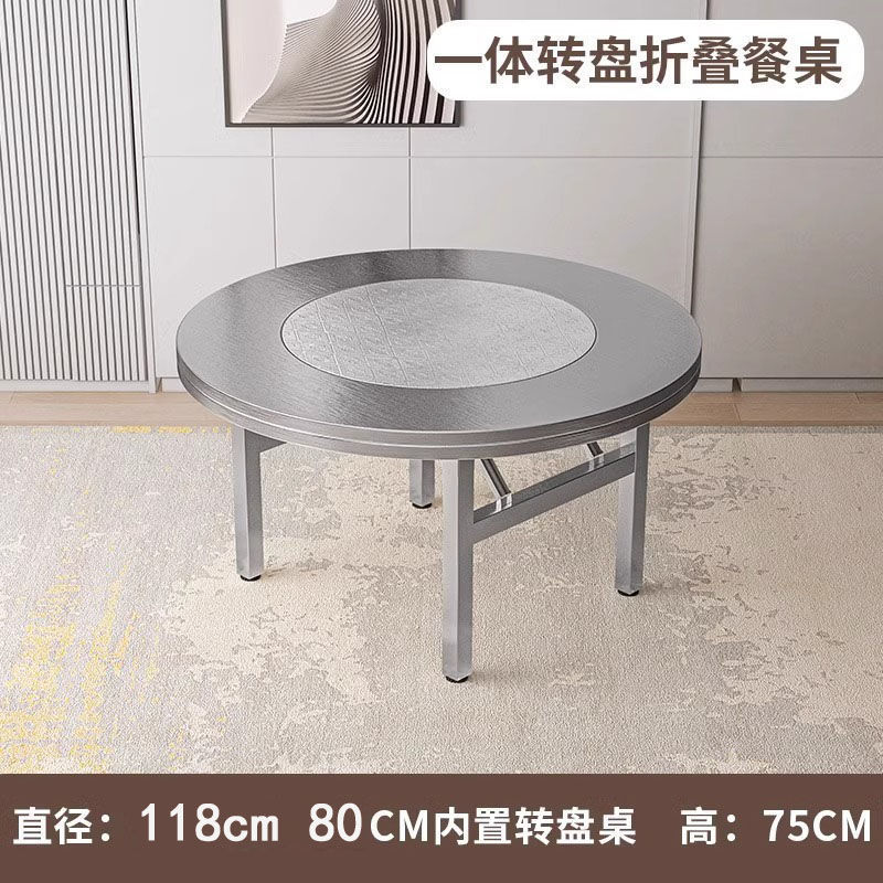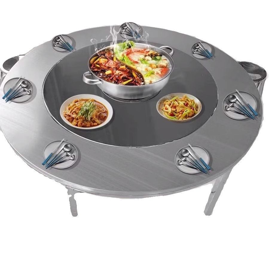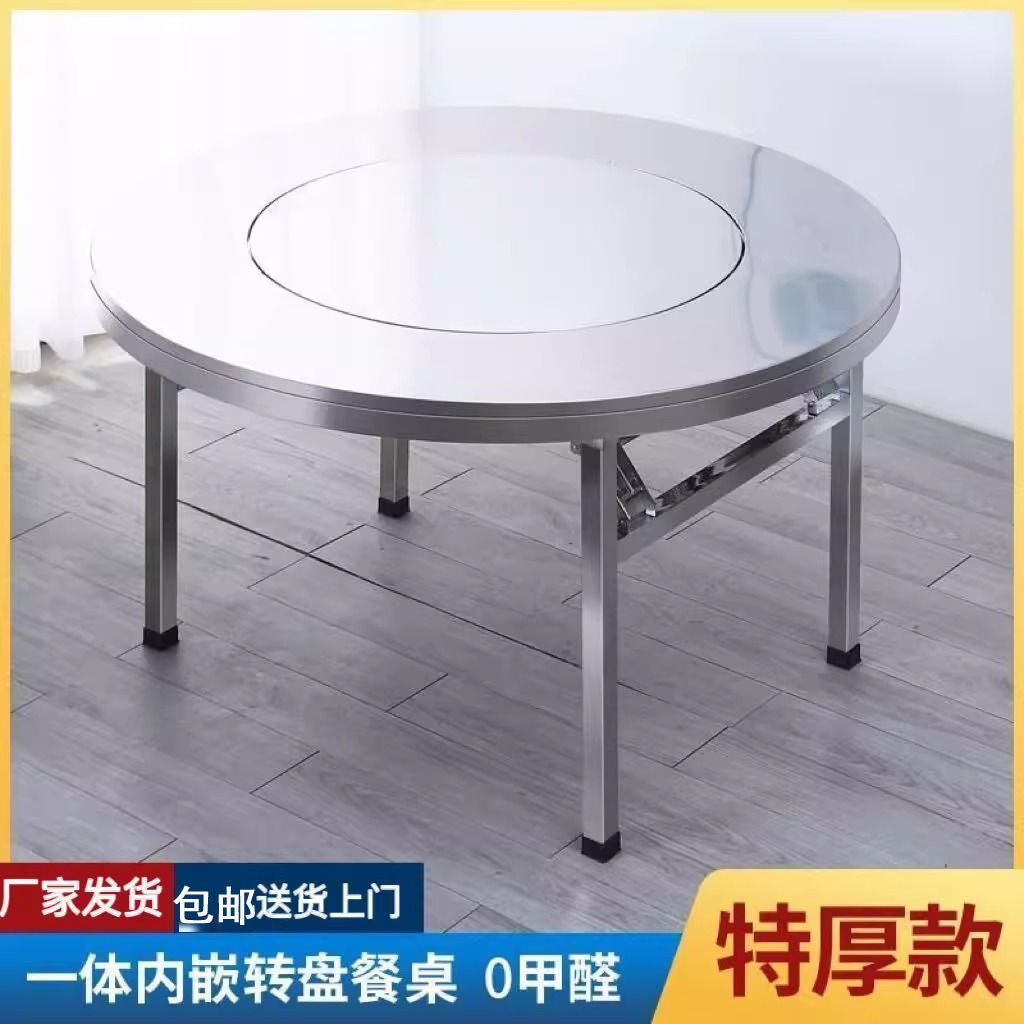 Mesa plegable de acero inoxidable gruesa, mesa de barbacoa comercial doméstica con mesa de comedor giratoria, mesa redonda doméstica plegable de acero inoxidable