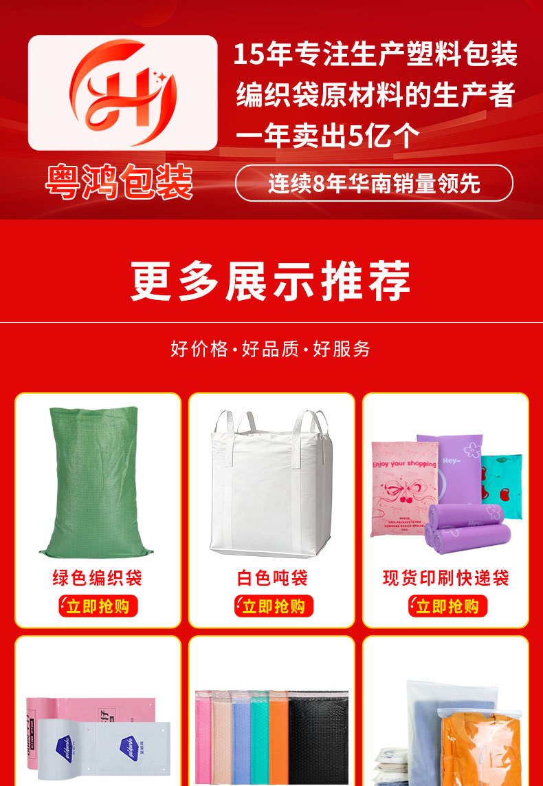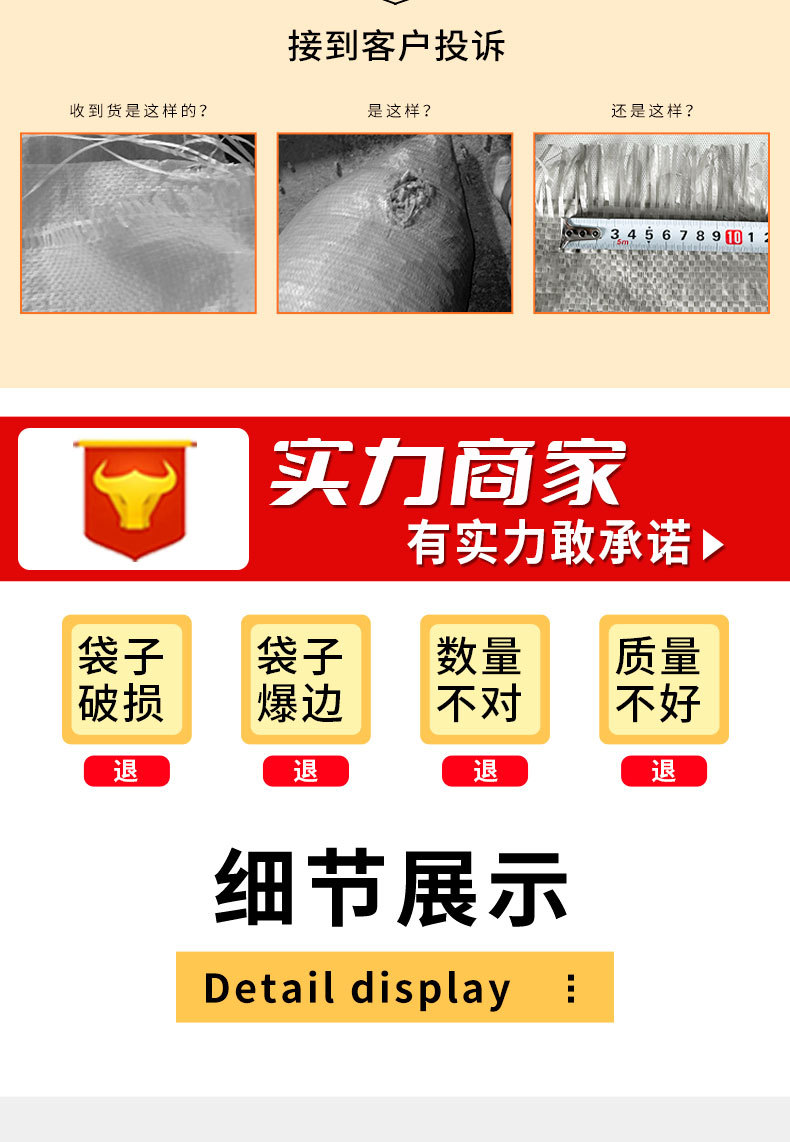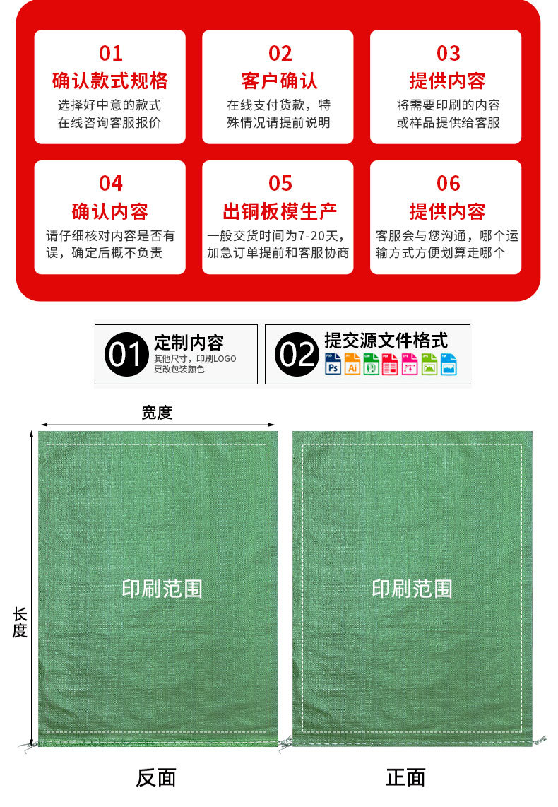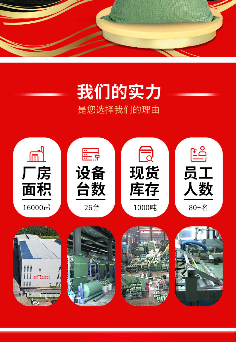 | Especificaciones y modelos | 蛇皮编织袋——页面标注尺寸均为下料尺寸;40*60(绿色52g),蛇皮编织袋——页面标注尺寸均为下料尺寸;45*75(绿色52g),蛇皮编织袋——页面标注尺寸均为下料尺寸;50*80(绿色52g),蛇皮编织袋——页面标注尺寸均为下料尺寸;50*90(绿色52g),蛇皮编织袋——页面标注尺寸均为下料尺寸;60*80(绿色52g),蛇皮编织袋——页面标注尺寸均为下料尺寸;70*113(灰绿52g),蛇皮编织袋——页面标注尺寸均为下料尺寸;80*100(灰绿52g),蛇皮编织袋——页面标注尺寸均为下料尺寸;80*120(灰绿52g),蛇皮编织袋——页面标注尺寸均为下料尺寸;80*130(灰绿52g),蛇皮编织袋——页面标注尺寸均为下料尺寸;90*100(灰绿52g),蛇皮编织袋——页面标注尺寸均为下料尺寸;90*110(灰绿52g),蛇皮编织袋——页面标注尺寸均为下料尺寸;90*120(灰绿52g),蛇皮编织袋——页面标注尺寸均为下料尺寸;90*130(灰绿52g),蛇皮编织袋——页面标注尺寸均为下料尺寸;100*120(灰绿52g),蛇皮编织袋——页面标注尺寸均为下料尺寸;100*140(灰绿52g),蛇皮编织袋——页面标注尺寸均为下料尺寸;100*150(灰绿52g),蛇皮编织袋——页面标注尺寸均为下料尺寸;40*60(绿色加厚57g),蛇皮编织袋——页面标注尺寸均为下料尺寸;45*75(绿色加厚57g),蛇皮编织袋——页面标注尺寸均为下料尺寸;50*80(绿色加厚57g),蛇皮编织袋——页面标注尺寸均为下料尺寸;50*90(绿色加厚57g),蛇皮编织袋——页面标注尺寸均为下料尺寸;60*80(绿色加厚57g),蛇皮编织袋——页面标注尺寸均为下料尺寸;70*90(绿色加厚57g),蛇皮编织袋——页面标注尺寸均为下料尺寸;70*113(绿色加厚57g),蛇皮编织袋——页面标注尺寸均为下料尺寸;80*100(绿色加厚57g),蛇皮编织袋——页面标注尺寸均为下料尺寸;80*120(绿色加厚57g),蛇皮编织袋——页面标注尺寸均为下料尺寸;90*100(绿色加厚57g),蛇皮编织袋——页面标注尺寸均为下料尺寸;90*110(绿色加厚57g),蛇皮编织袋——页面标注尺寸均为下料尺寸;90*120(绿色加厚57g),蛇皮编织袋——页面标注尺寸均为下料尺寸;90*130(绿色加厚57g),蛇皮编织袋——页面标注尺寸均为下料尺寸;100*120(绿色加厚57g),蛇皮编织袋——页面标注尺寸均为下料尺寸;100*135(绿色加厚57g),蛇皮编织袋——页面标注尺寸均为下料尺寸;100*150(绿色加厚57g),蛇皮编织袋——页面标注尺寸均为下料尺寸;110*130(绿色加厚57g),蛇皮编织袋——页面标注尺寸均为下料尺寸;110*150(绿色加厚57g),蛇皮编织袋——页面标注尺寸均为下料尺寸;120*150(绿色加厚57g),蛇皮编织袋——页面标注尺寸均为下料尺寸;130*150(绿色加厚57g),蛇皮编织袋——页面标注尺寸均为下料尺寸;140*170(绿色加厚57g),蛇皮编织袋——页面标注尺寸均为下料尺寸;150*180(绿色加厚57g),蛇皮编织袋——页面标注尺寸均为下料尺寸;150*200(绿色加厚57g) |