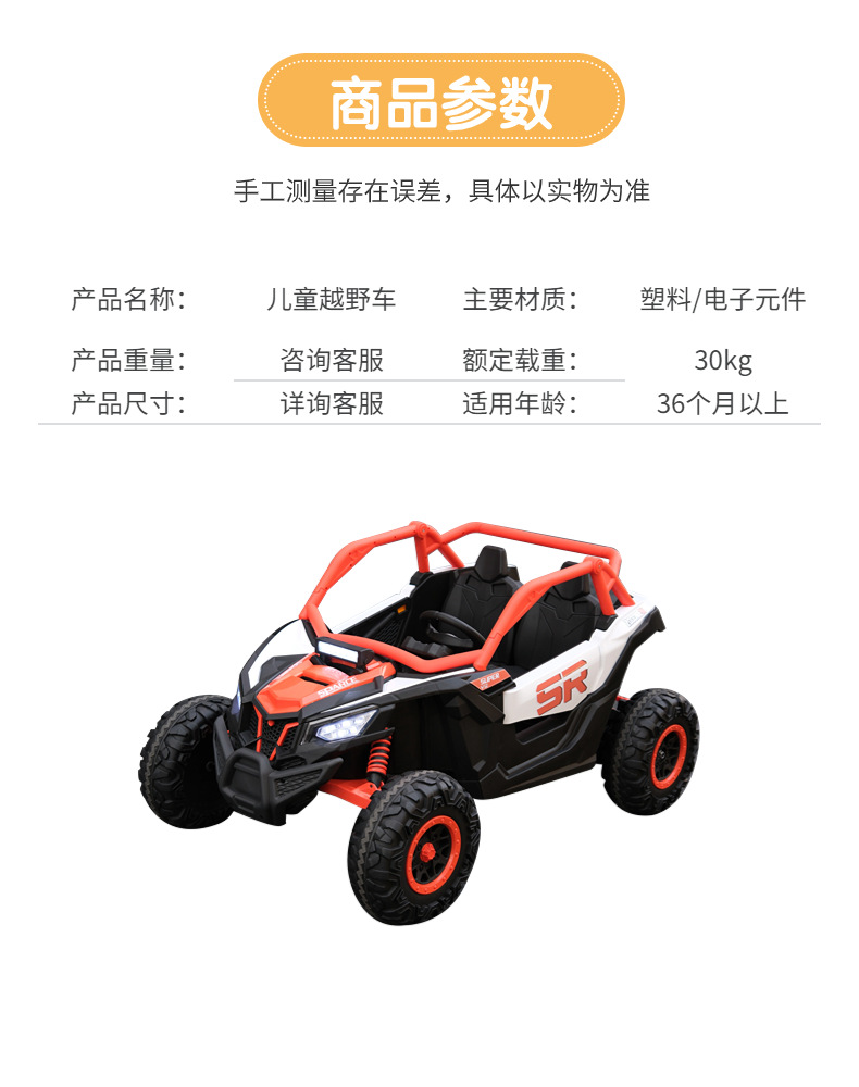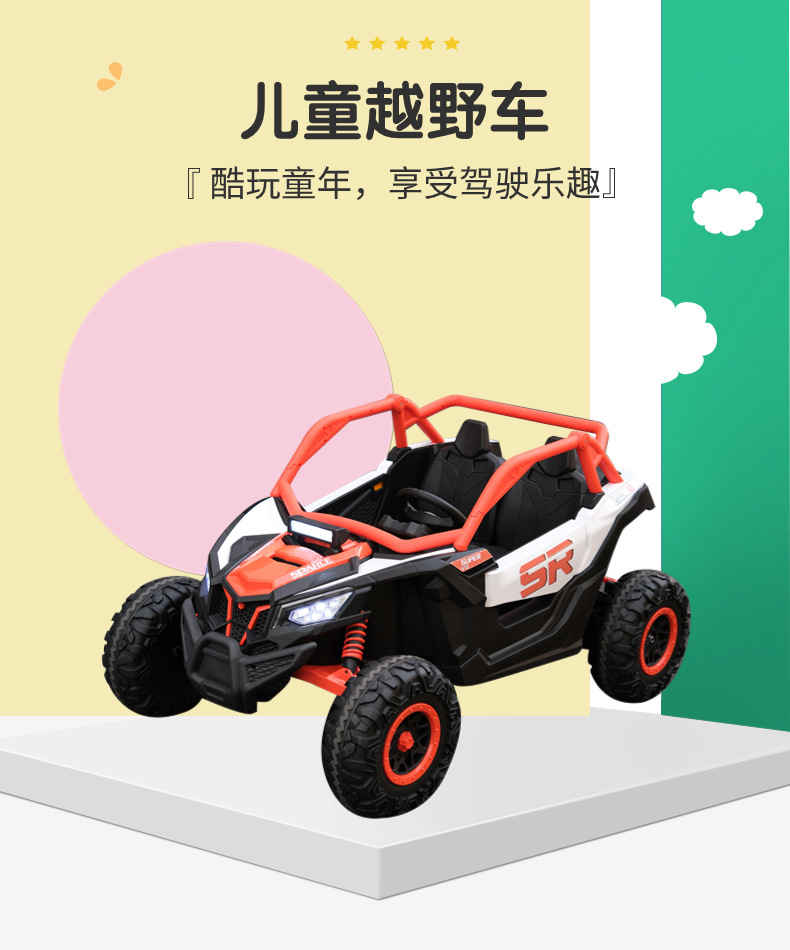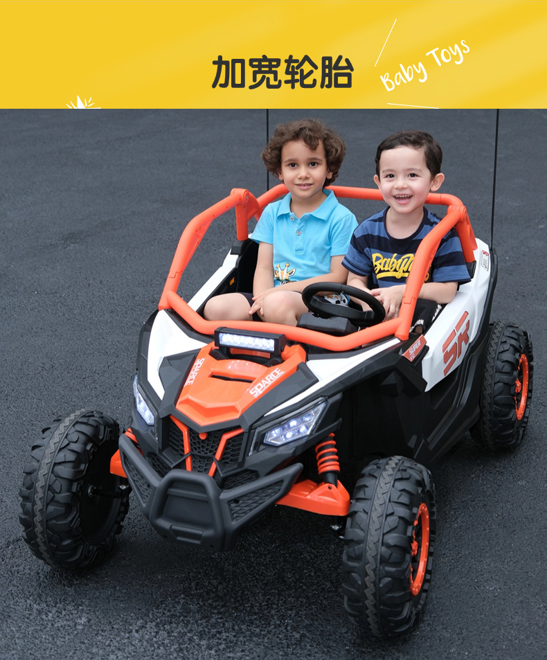 Vehículo eléctrico de cuatro ruedas todoterreno de dos asientos con control remoto para niños, niños y niñas, coche de juguete recargable