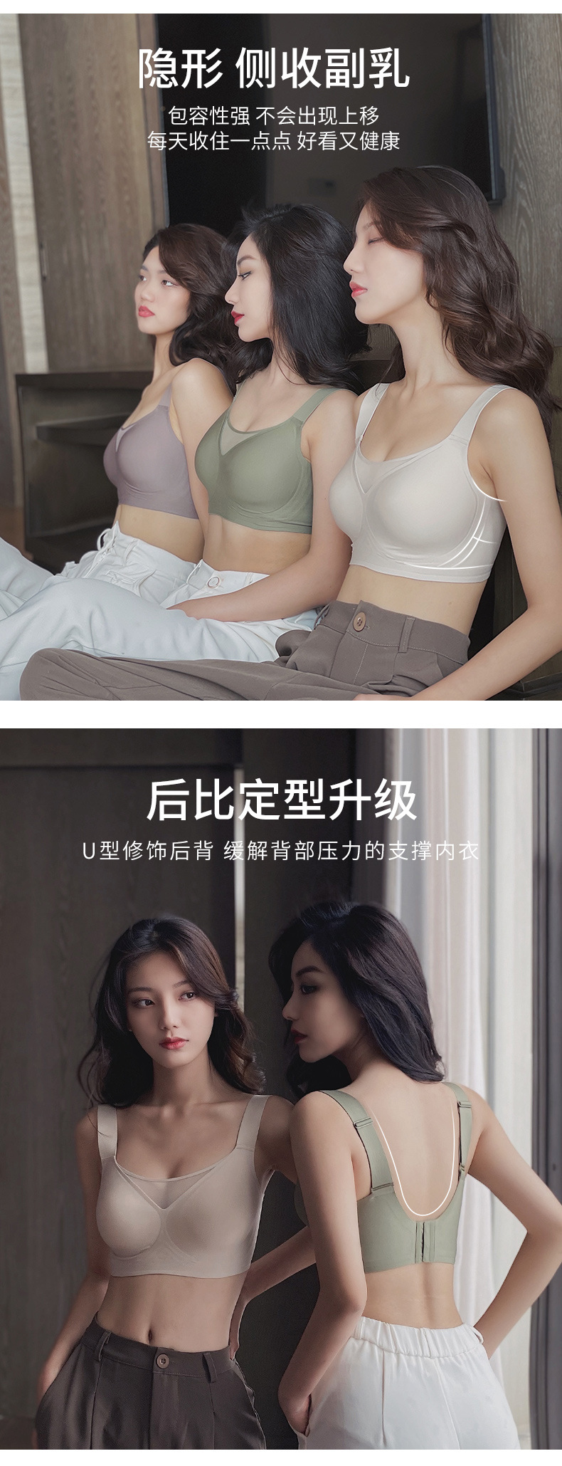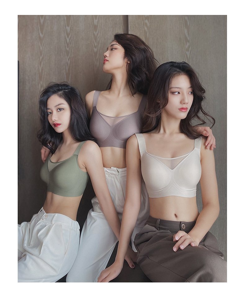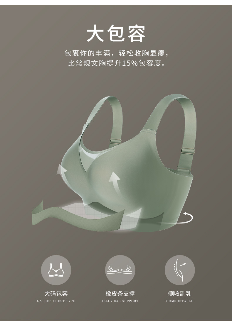 Gran tamaño de tela de tela de jalea ropa interior damas gran pecho pequeño sin marcas de anti-luz sujetador se reúne contra la caída sujetador de soporte superior