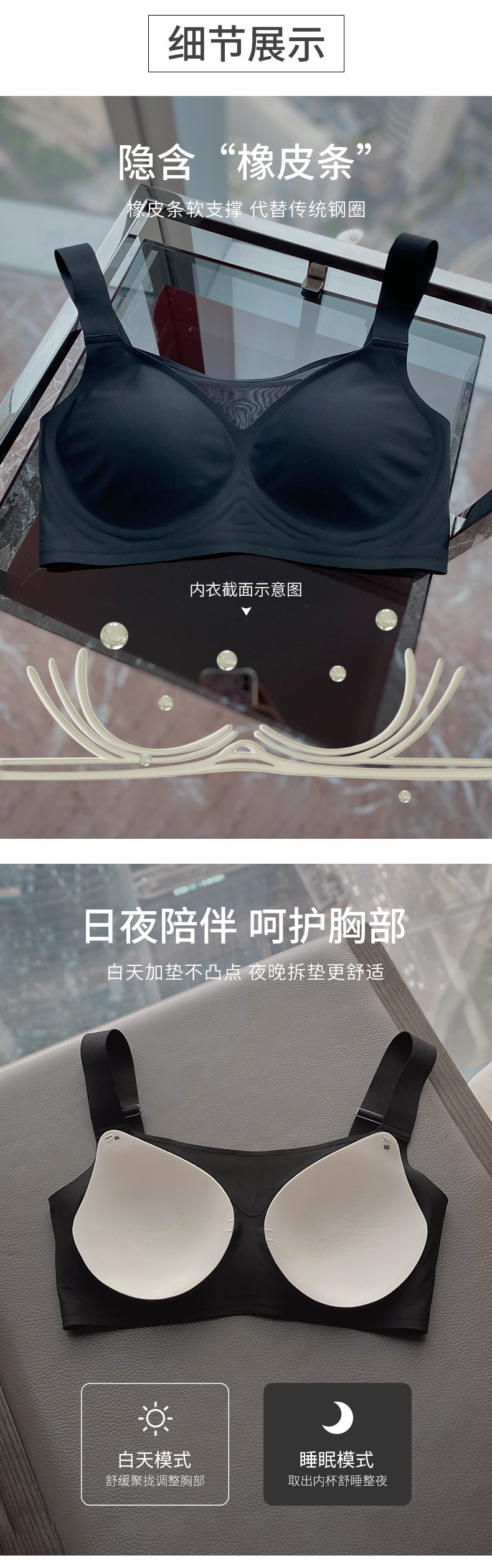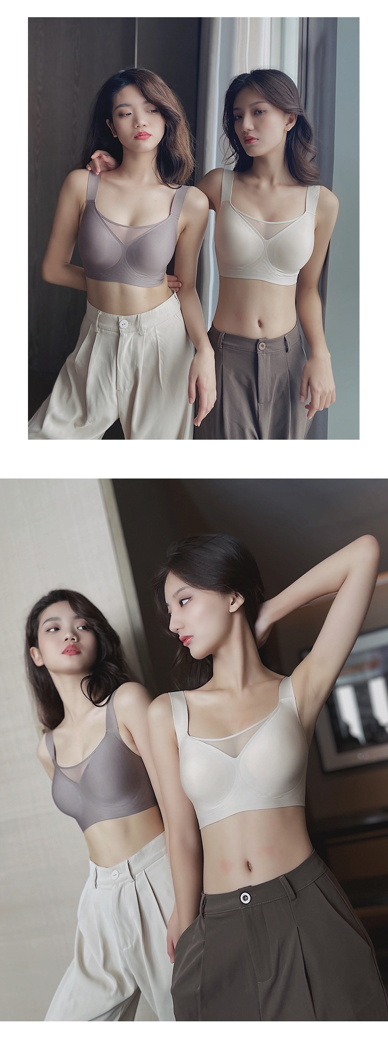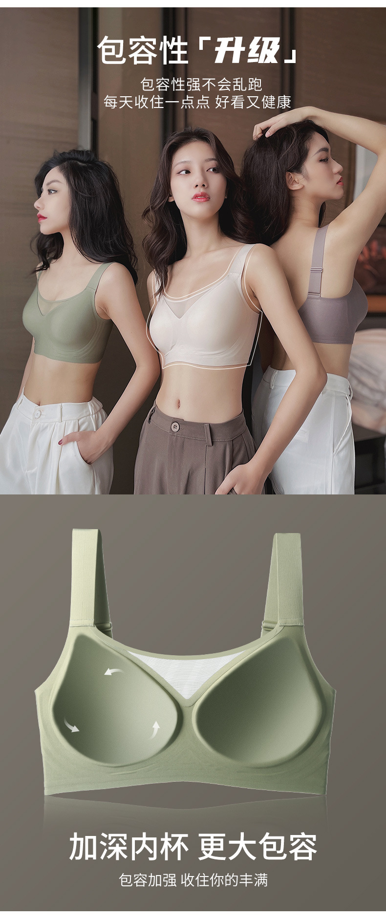 Gran tamaño de tela de tela de jalea ropa interior damas gran pecho pequeño sin marcas de anti-luz sujetador se reúne contra la caída sujetador de soporte superior