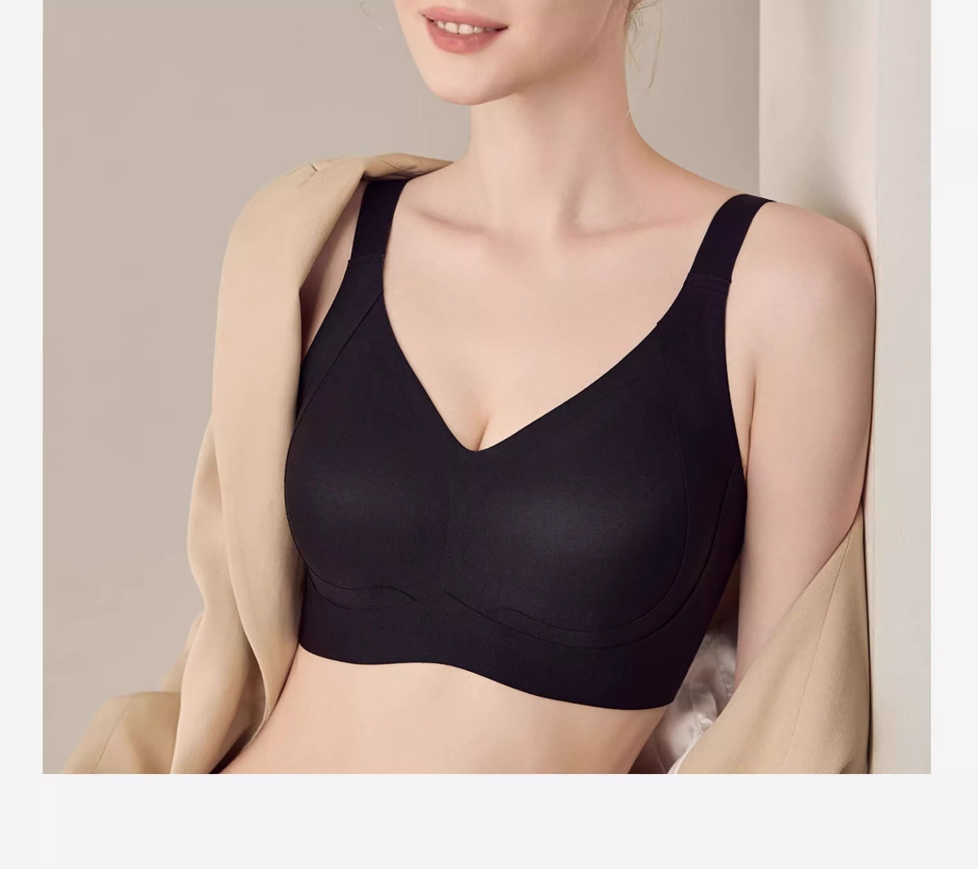 Base líquida sin costuras de gran tamaño, ropa interior invisible, sujetador sin anillo de acero recogido para damas, sujetador de soporte superior anti-flacidez