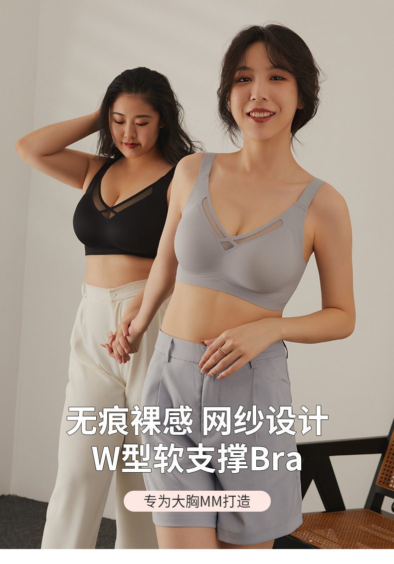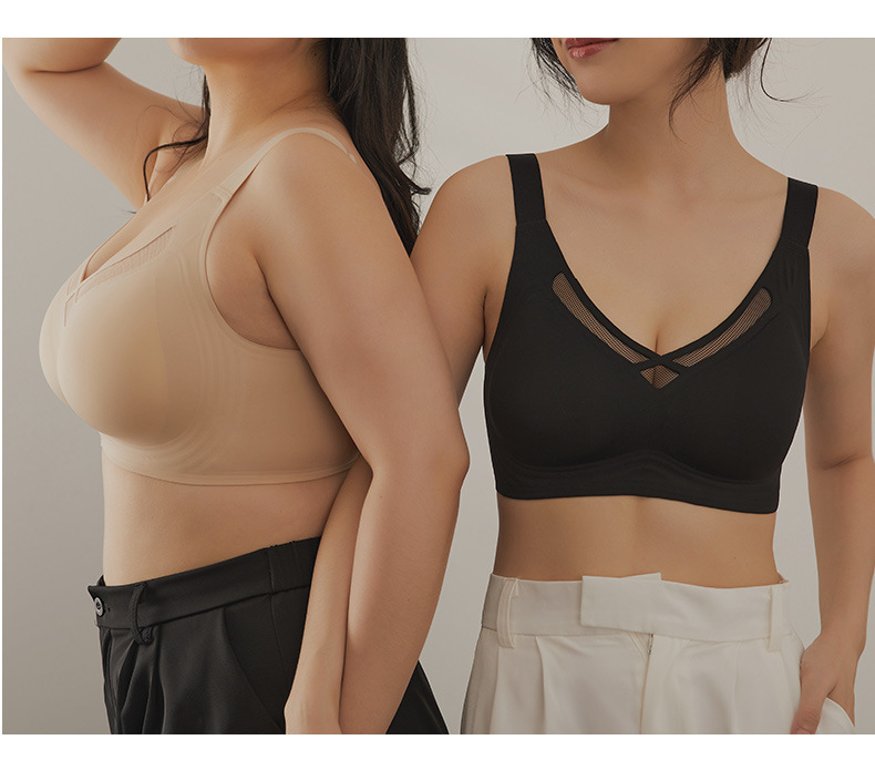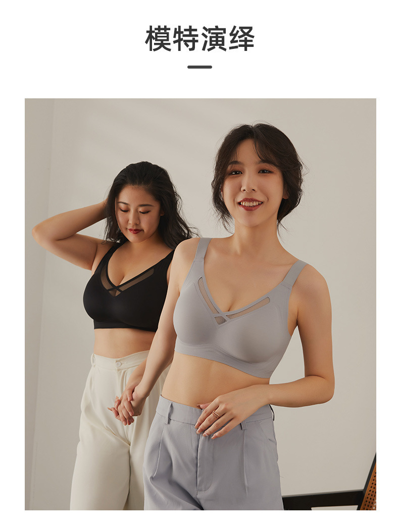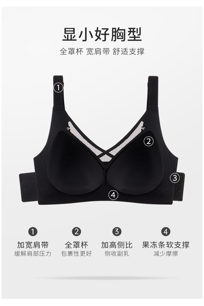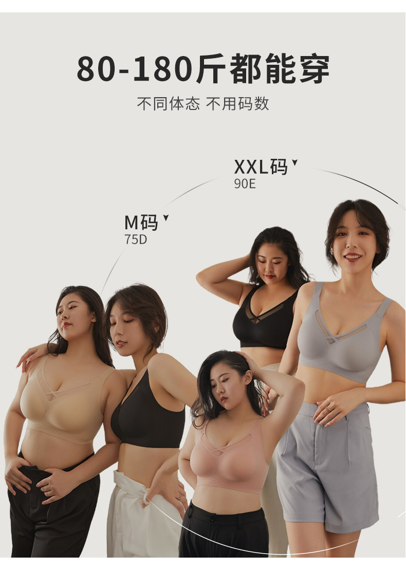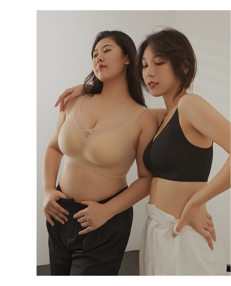 Gran tamaño de grasa MM sin marcas de jalea ropa interior delgada damas gran pecho mostrando un pequeño sujetador anti-caída soporte superior fija copa sujetador