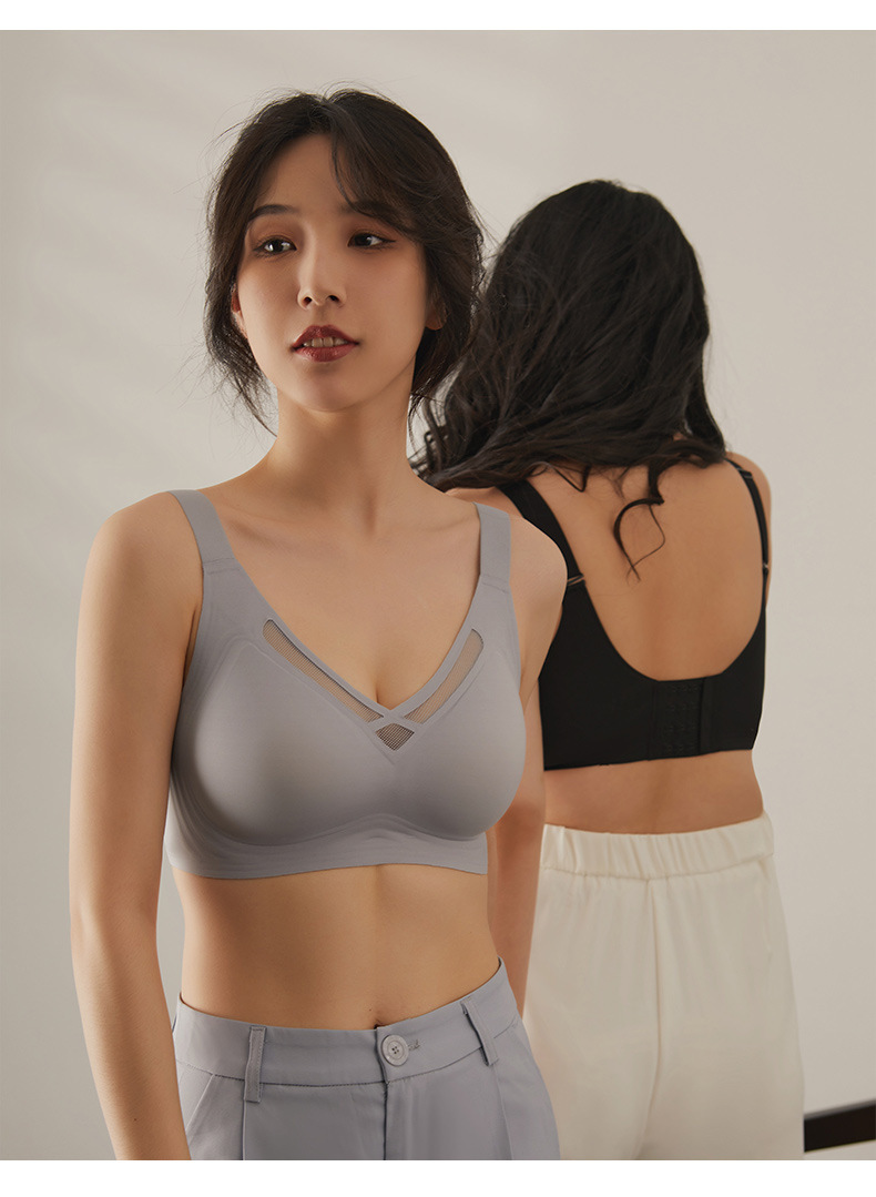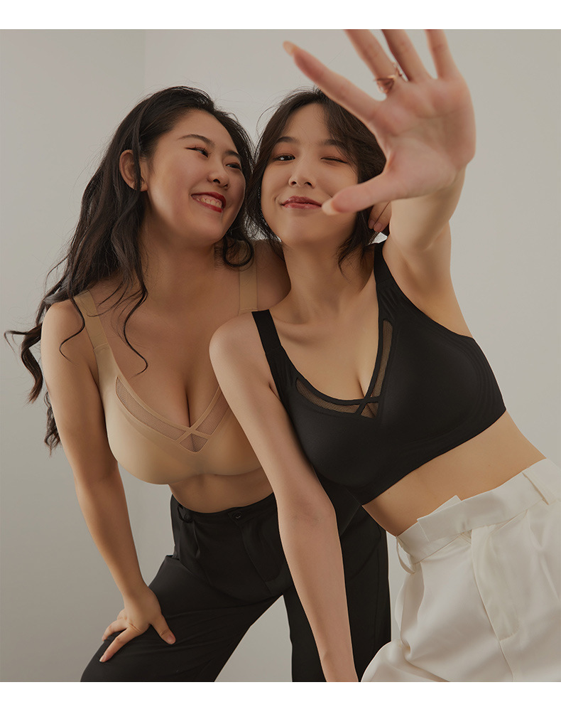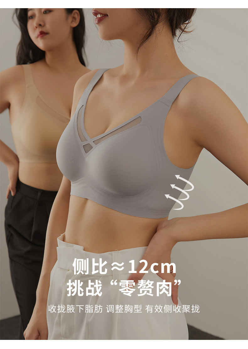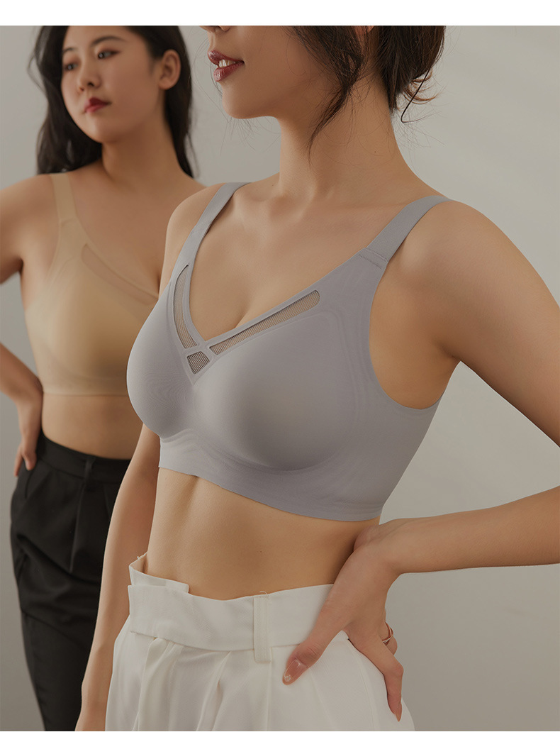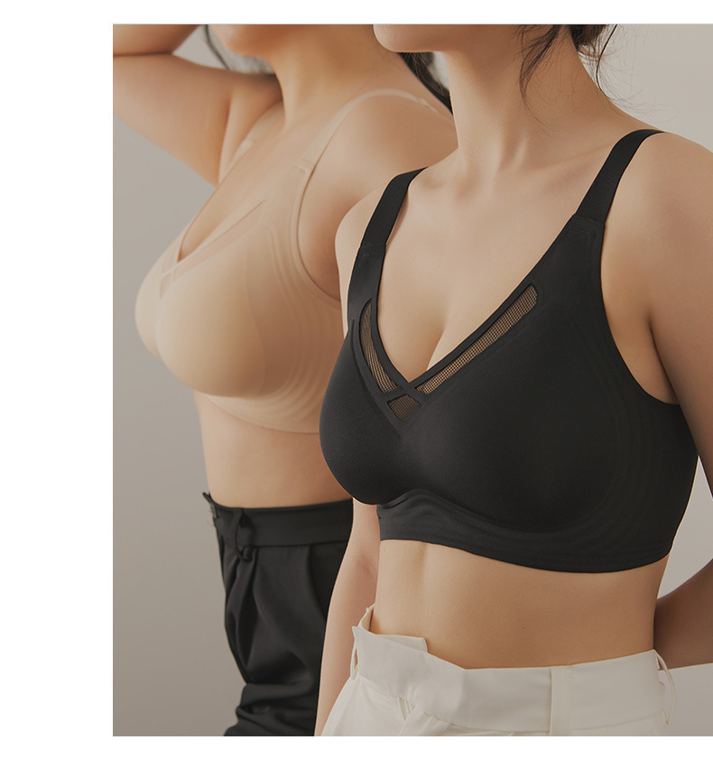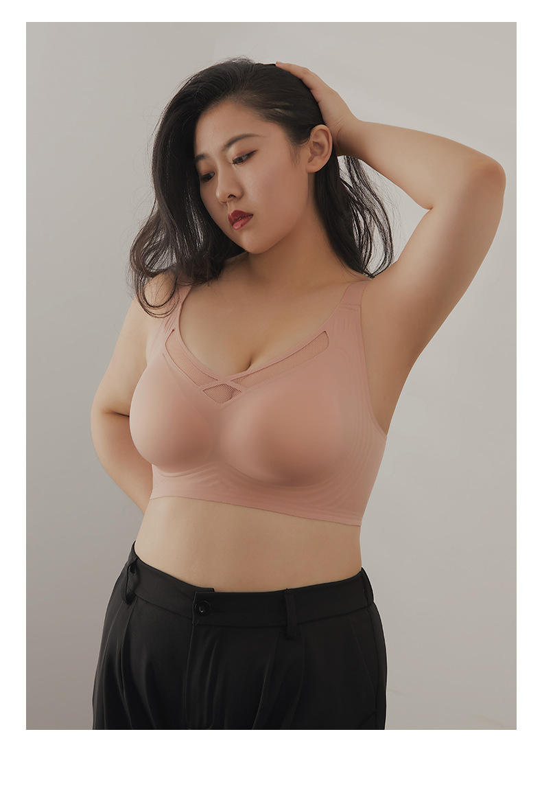 Gran tamaño de grasa MM sin marcas de jalea ropa interior delgada damas gran pecho mostrando un pequeño sujetador anti-caída soporte superior fija copa sujetador